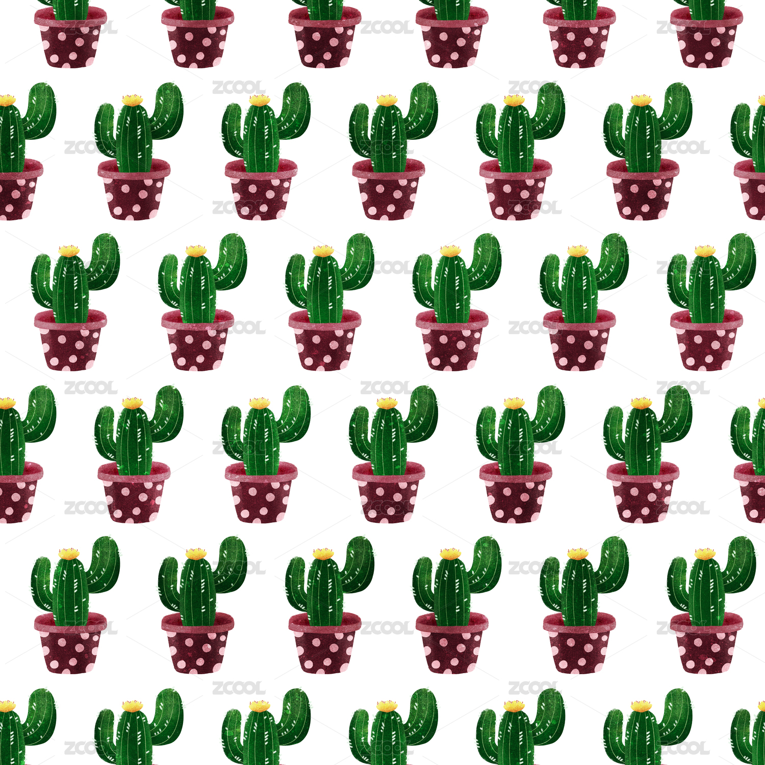 盆栽仙人掌四方无缝插画
