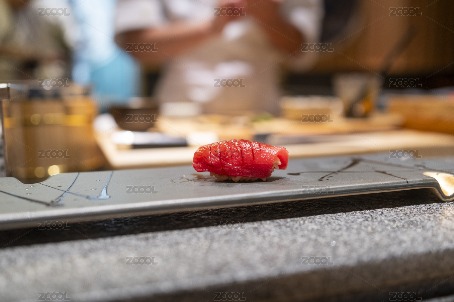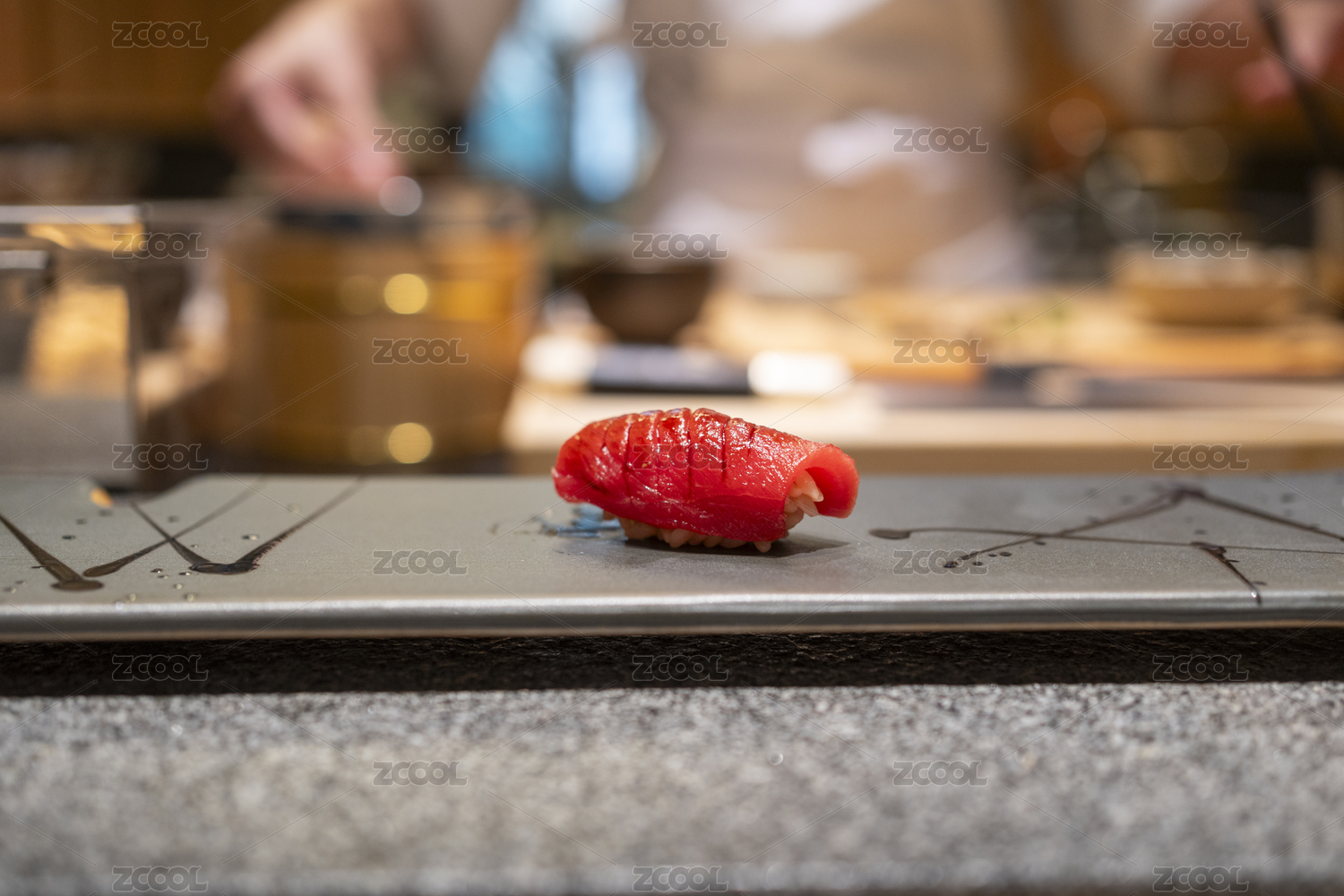 盘子上的金枪鱼寿司特写