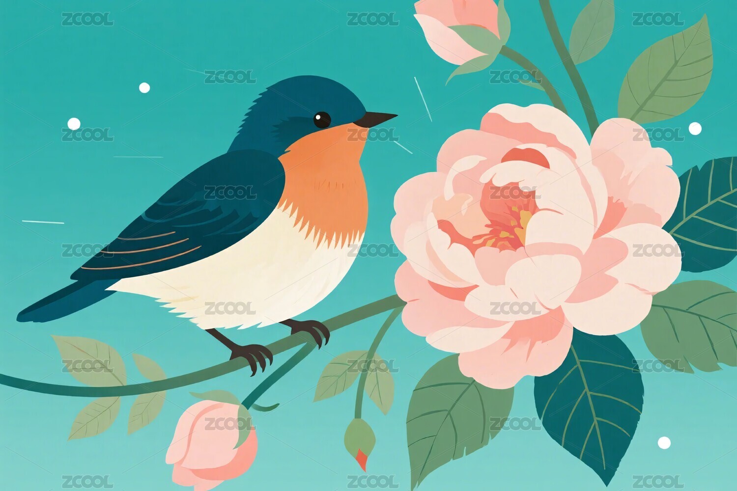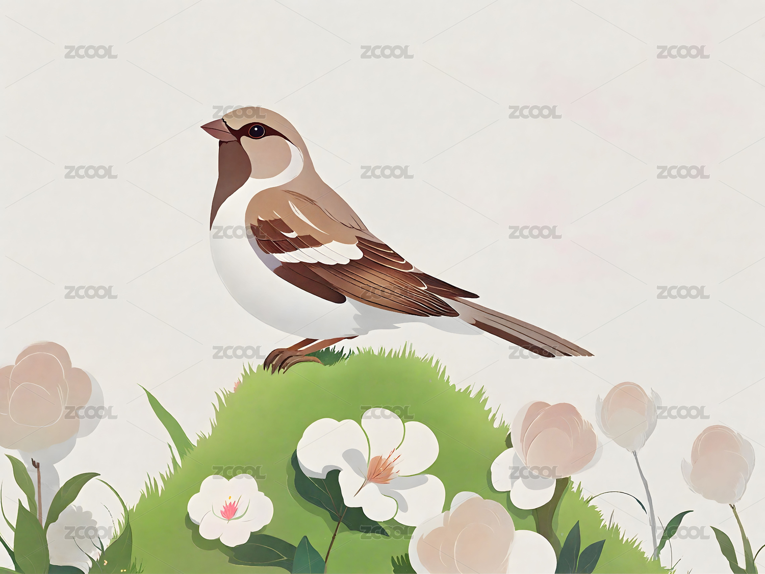 麻雀,鸟类,山雀,治愈,清新,绿色,鲜花,春天,白云,自然