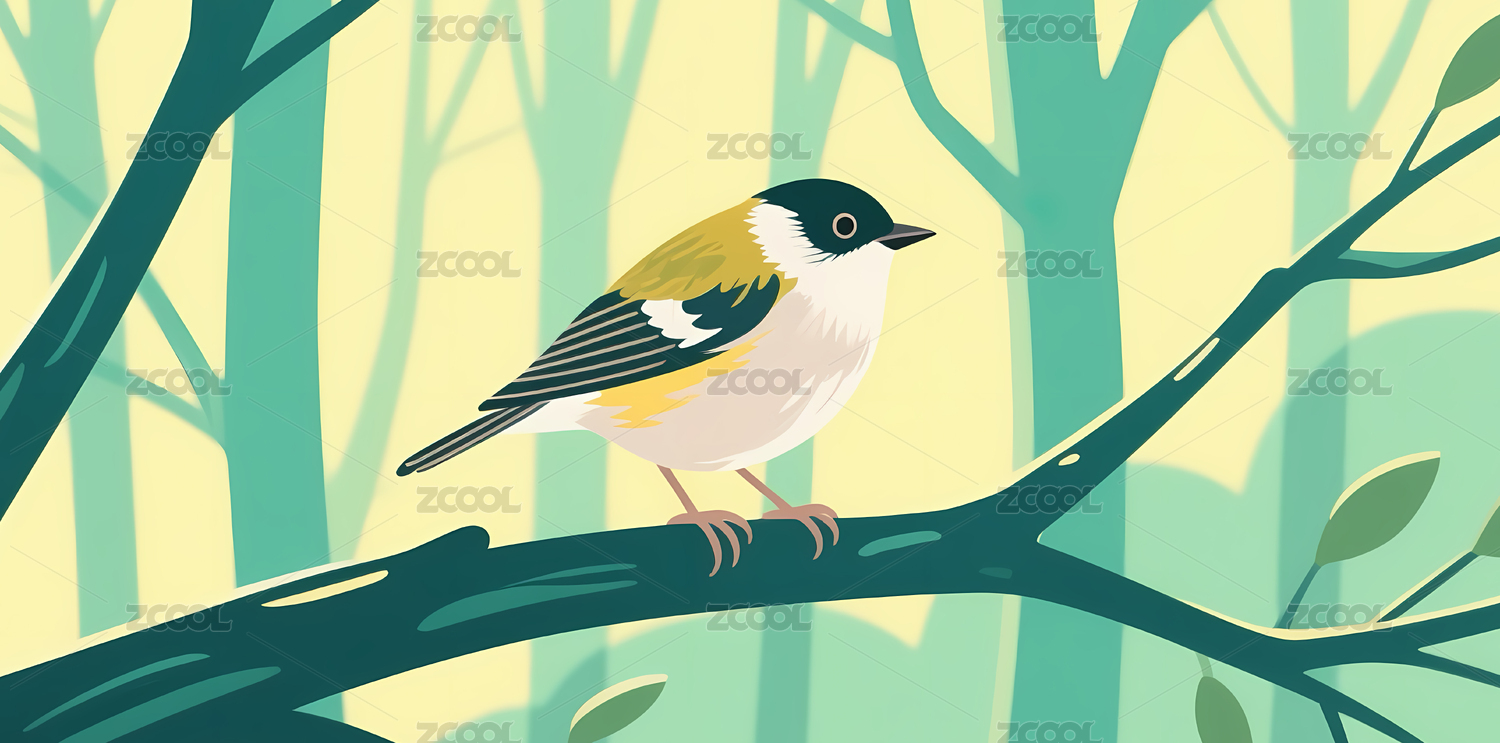 白底一只站立昂头的彩色可爱的鸟插画绘画