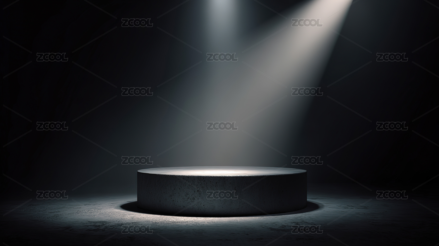 光线照射在极简空间中的圆形展台