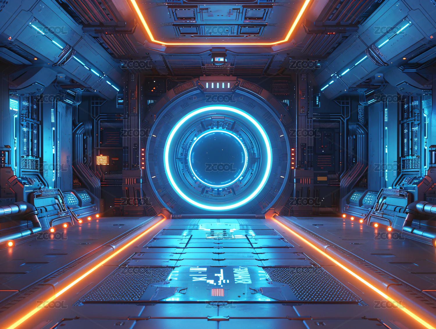 3D渲染的科幻延伸背景,空间站飞船的走廊