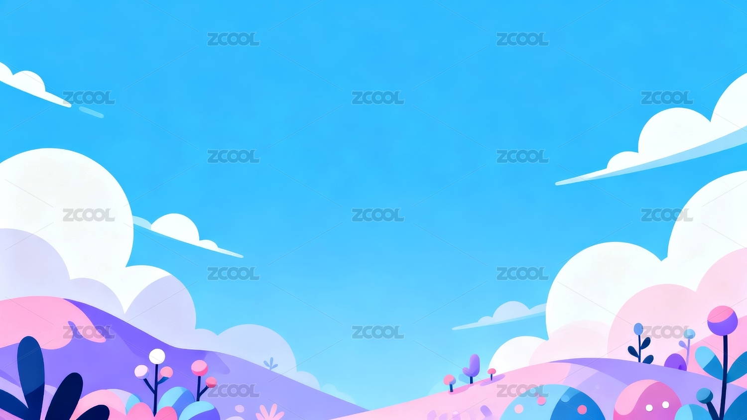 卡通夏季踏青旅游登山风景出行矢量插画背景