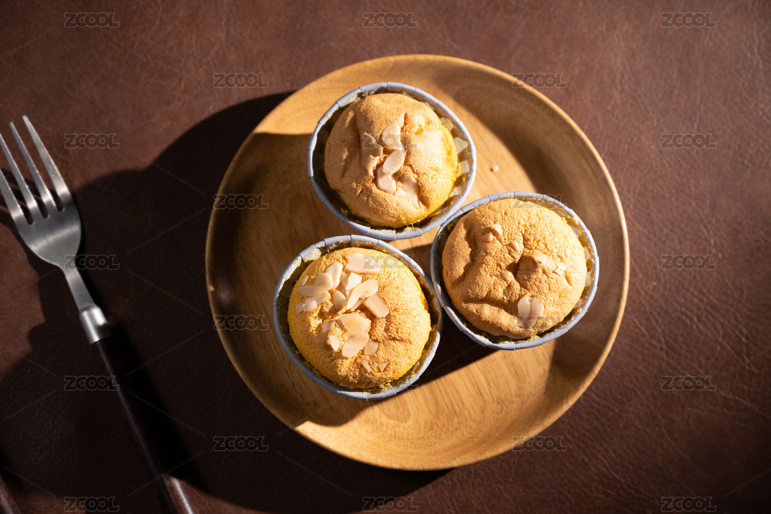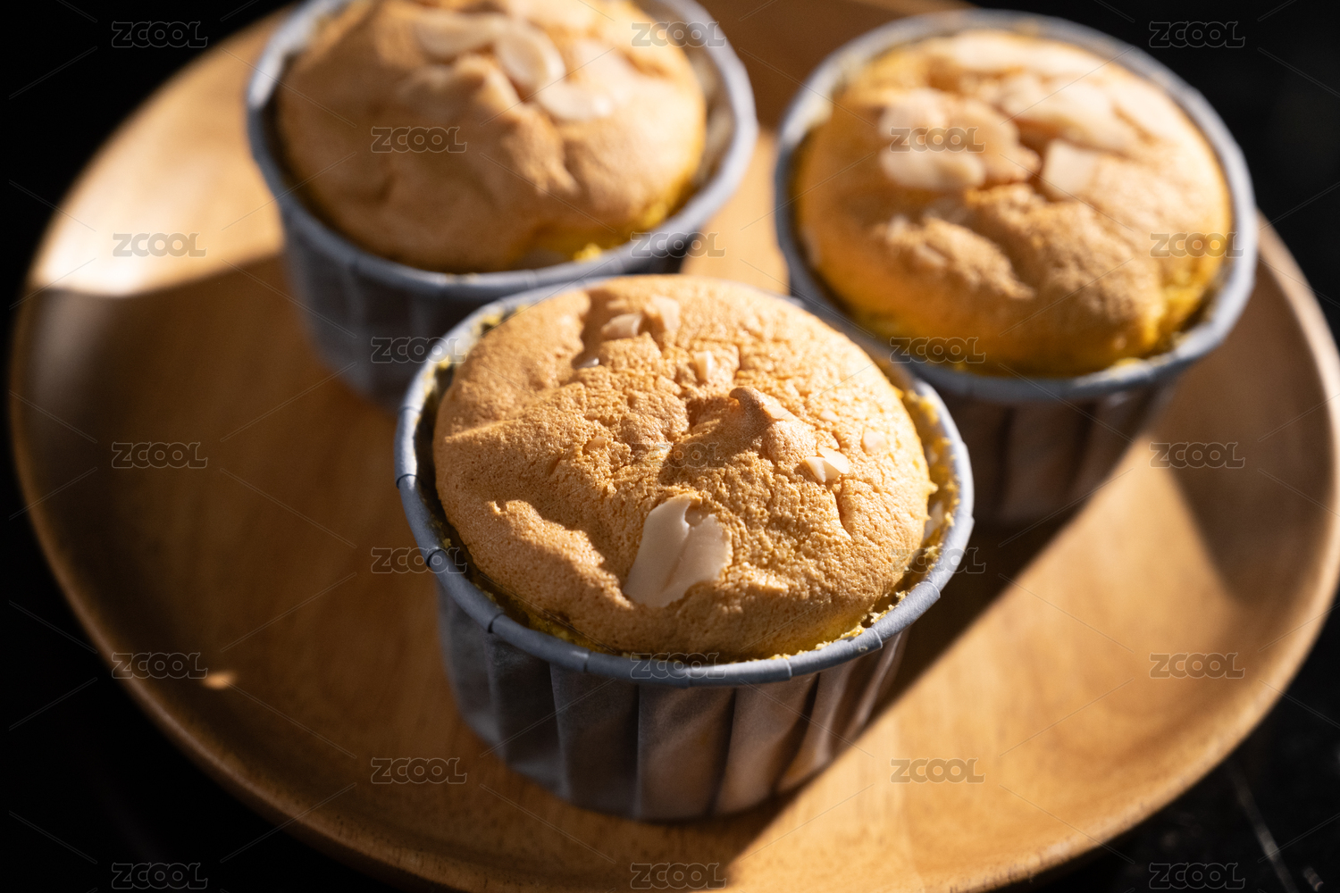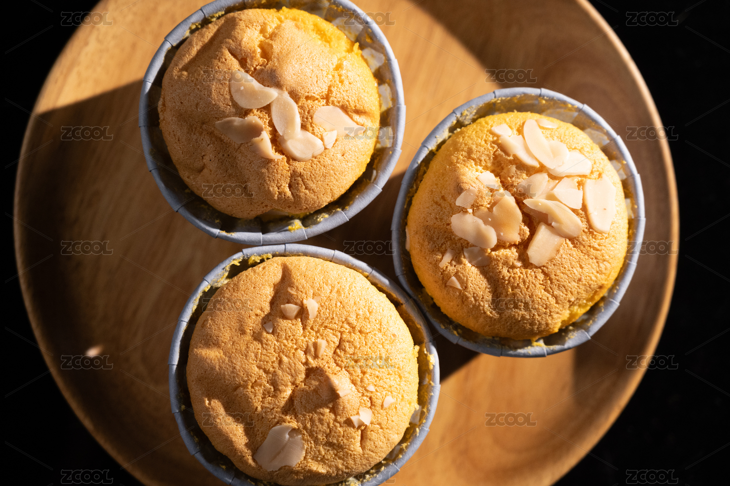 桌面上的盘子里的美味可口的纸杯蛋糕