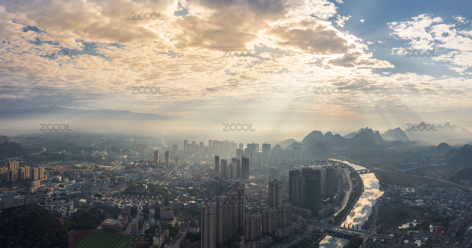 晨光中俯瞰群山环抱的桂林城