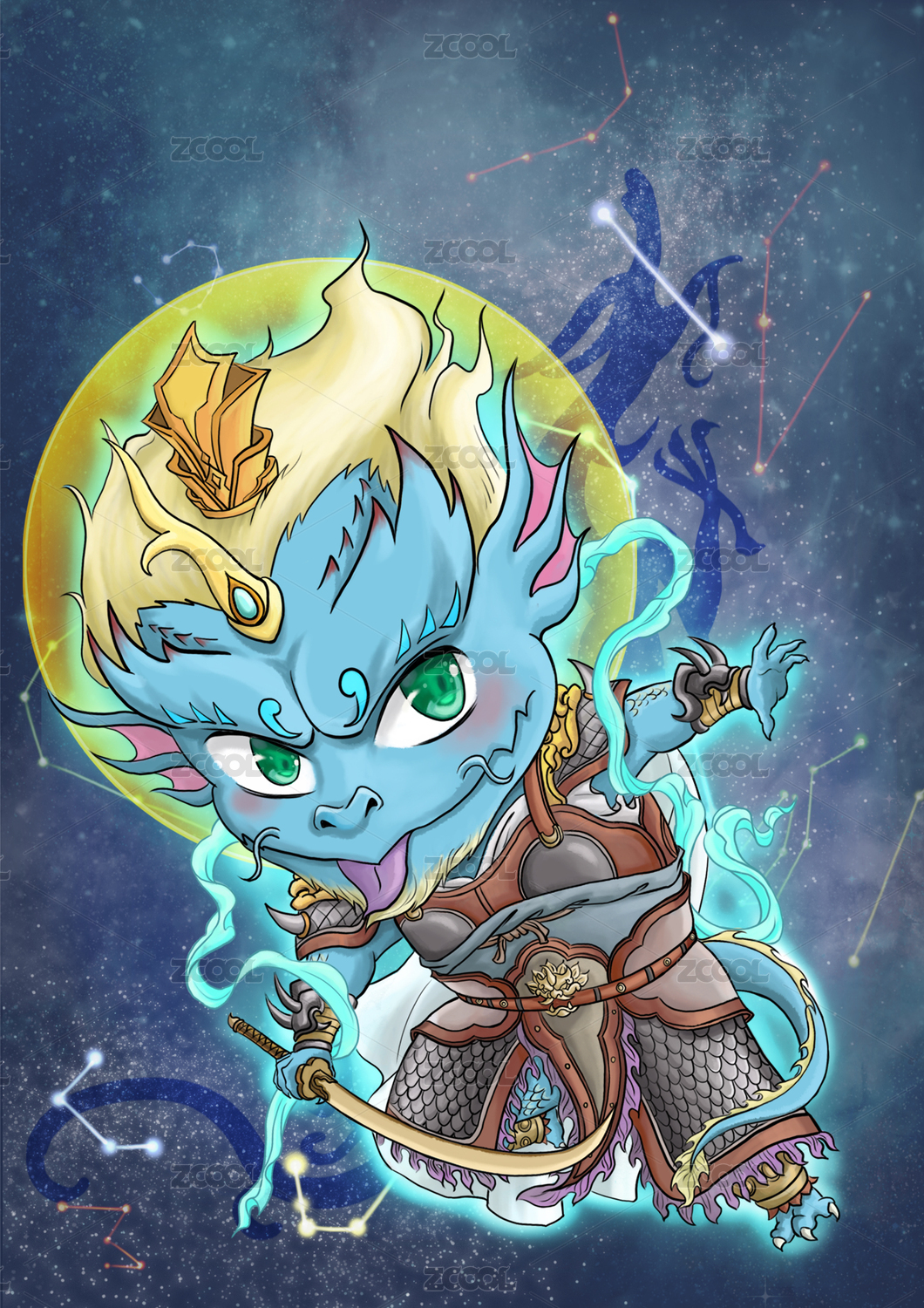 兔年年画元素风调雨顺四大天王兔南方增长天