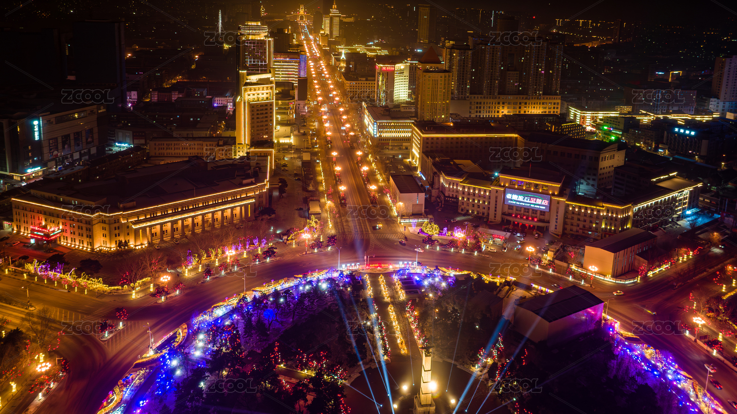 中国辽宁沈阳市府恒隆广场和天际线夜景航拍