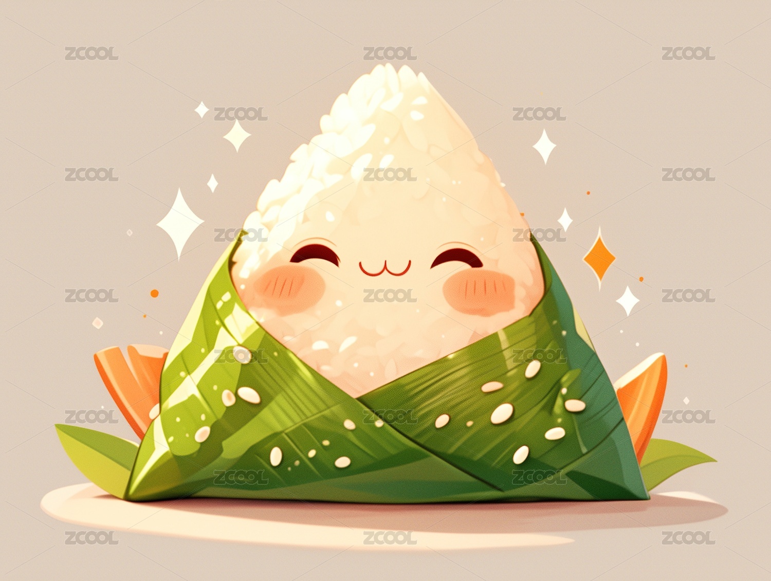 绿色粽叶包裹的咸蛋粽子矢量插画
