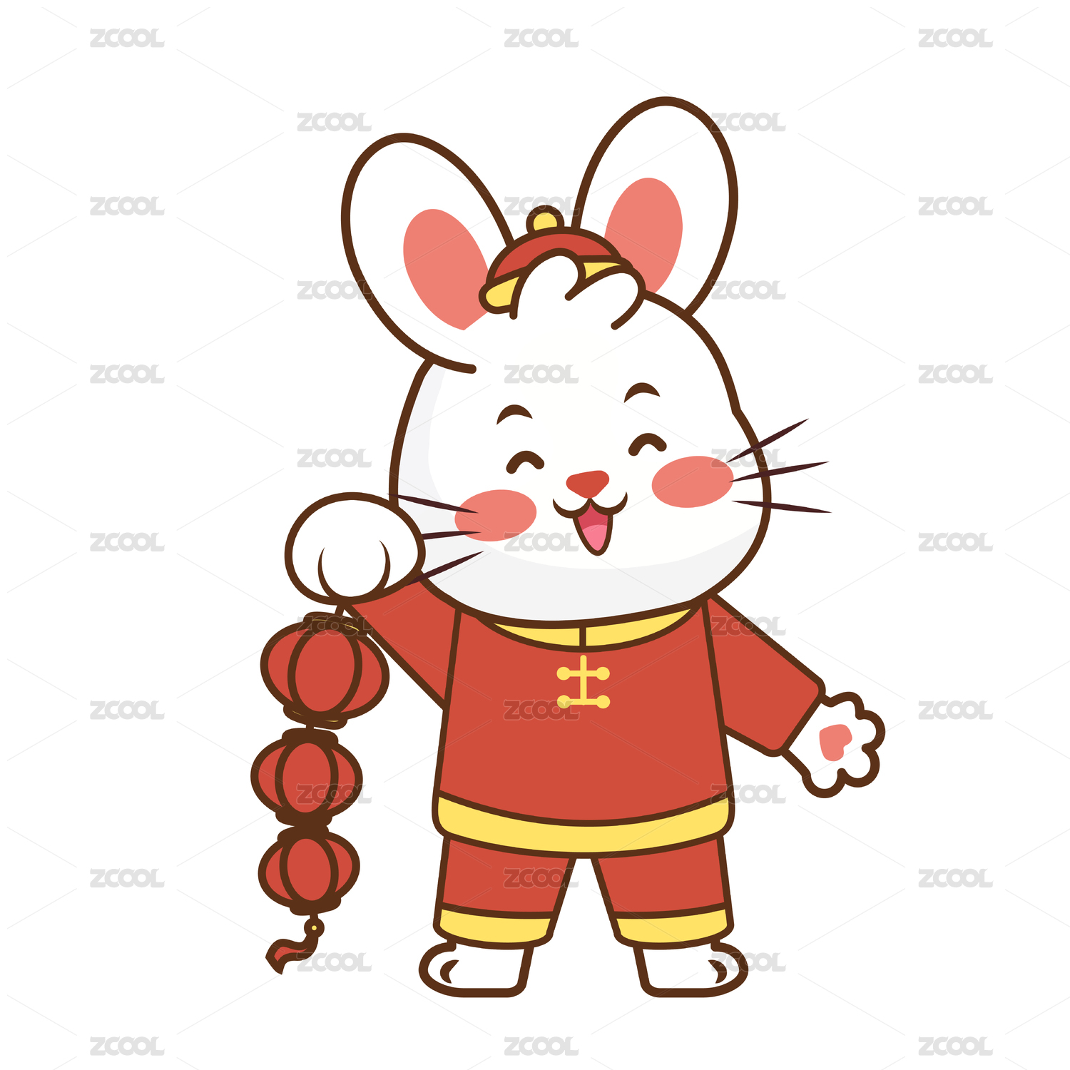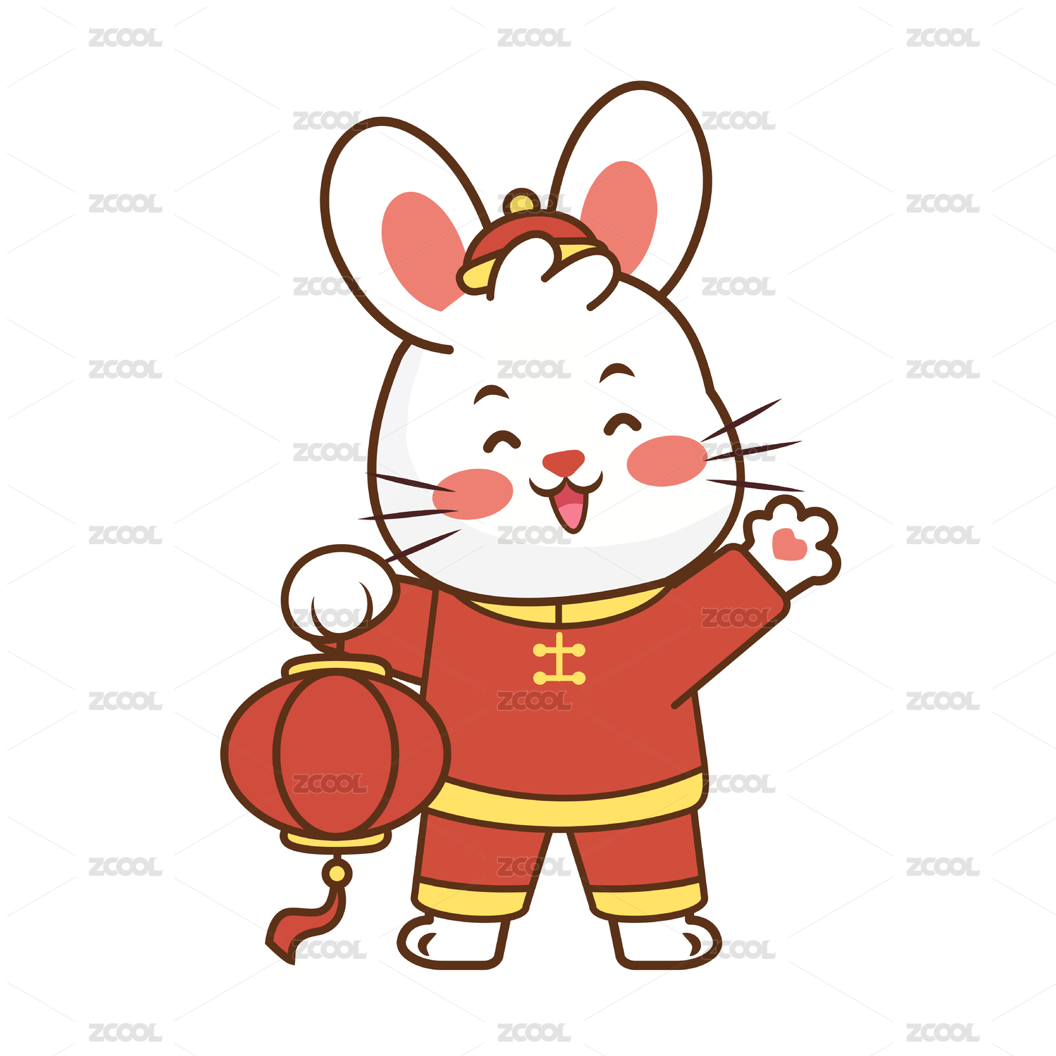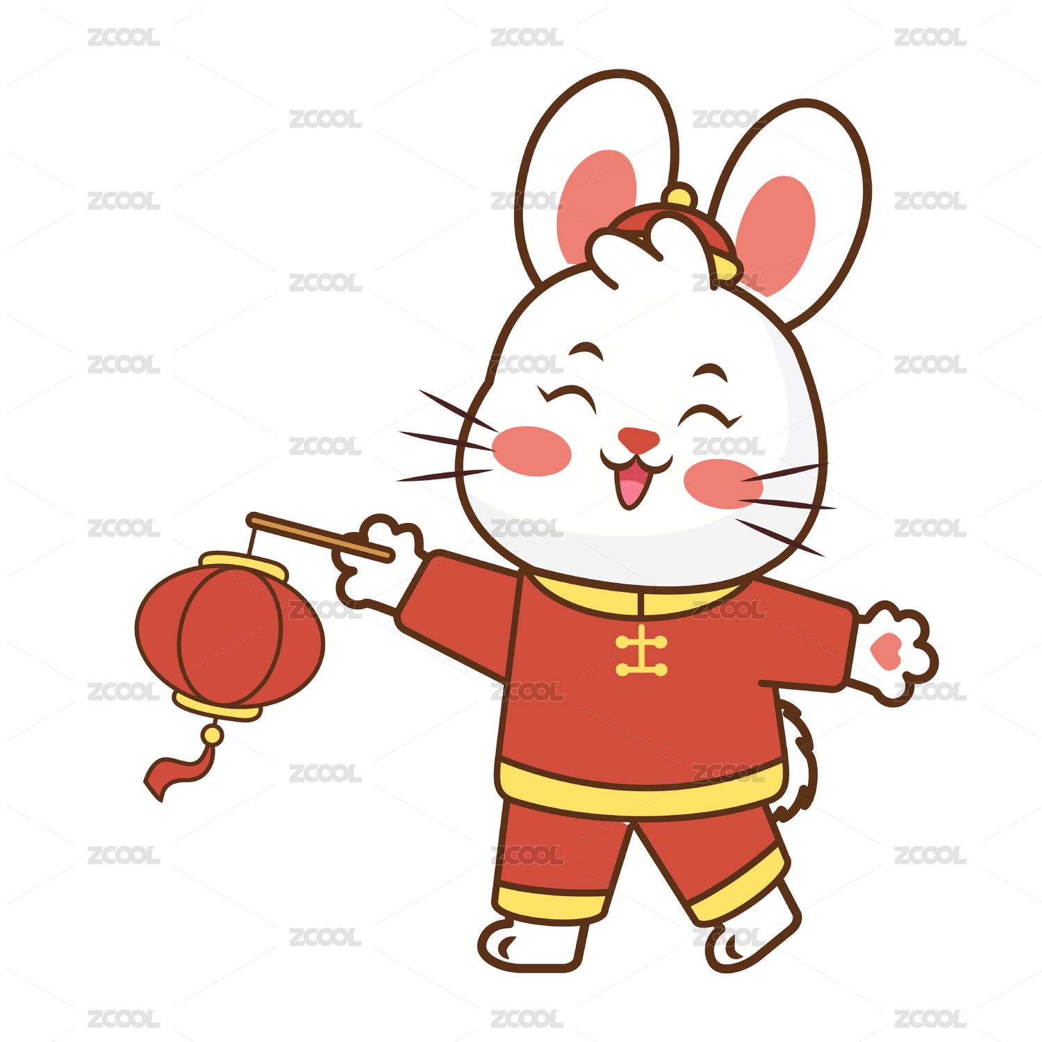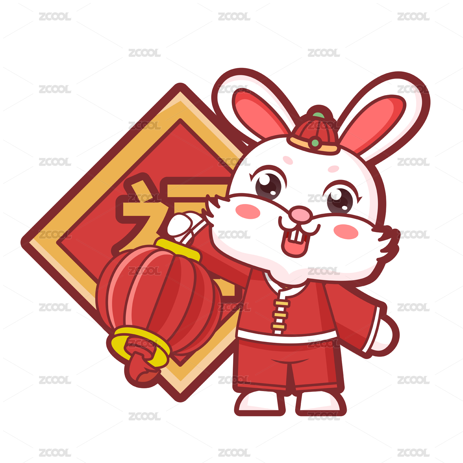 兔年春节拿着灯笼的卡通兔子