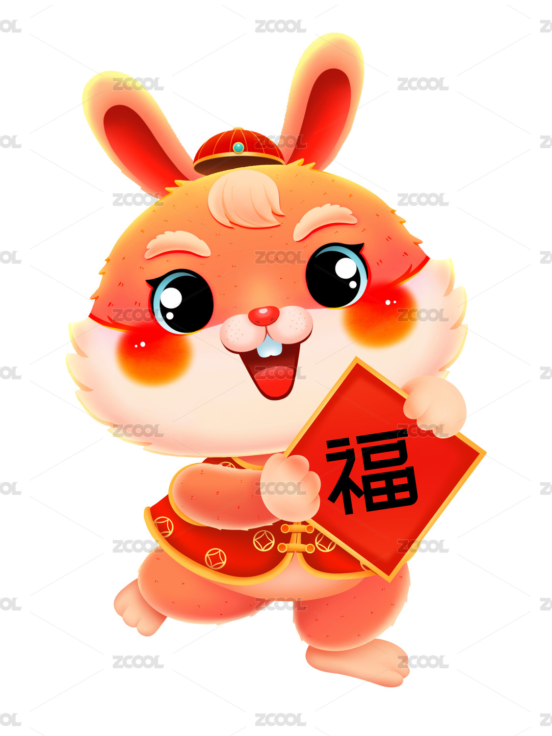 国潮可爱卡通抱福的桔兔元素