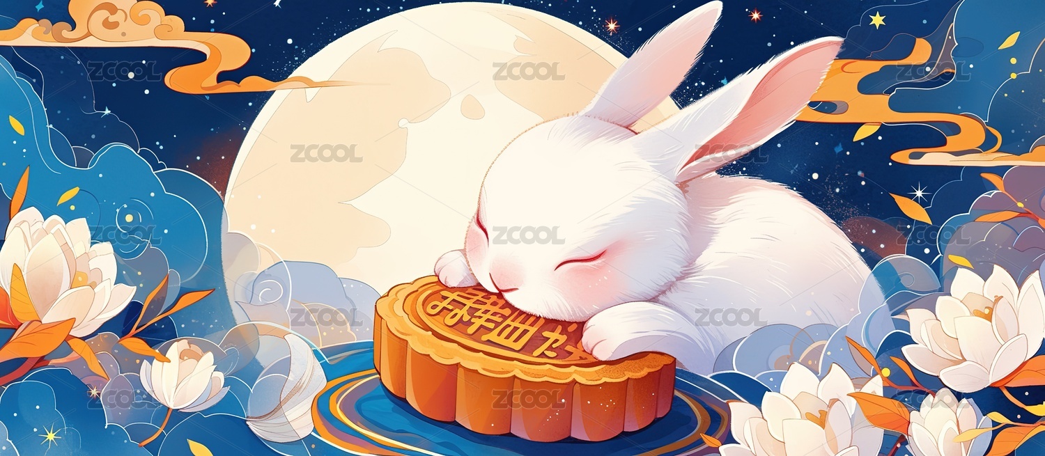 中秋节月饼和小兔子