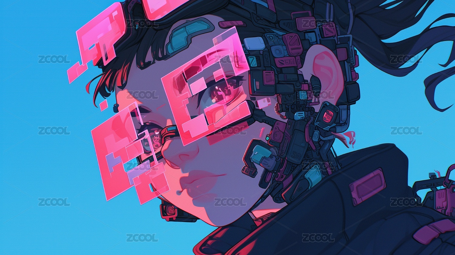 二次元风元素少女抽象艺术写真壁纸人像