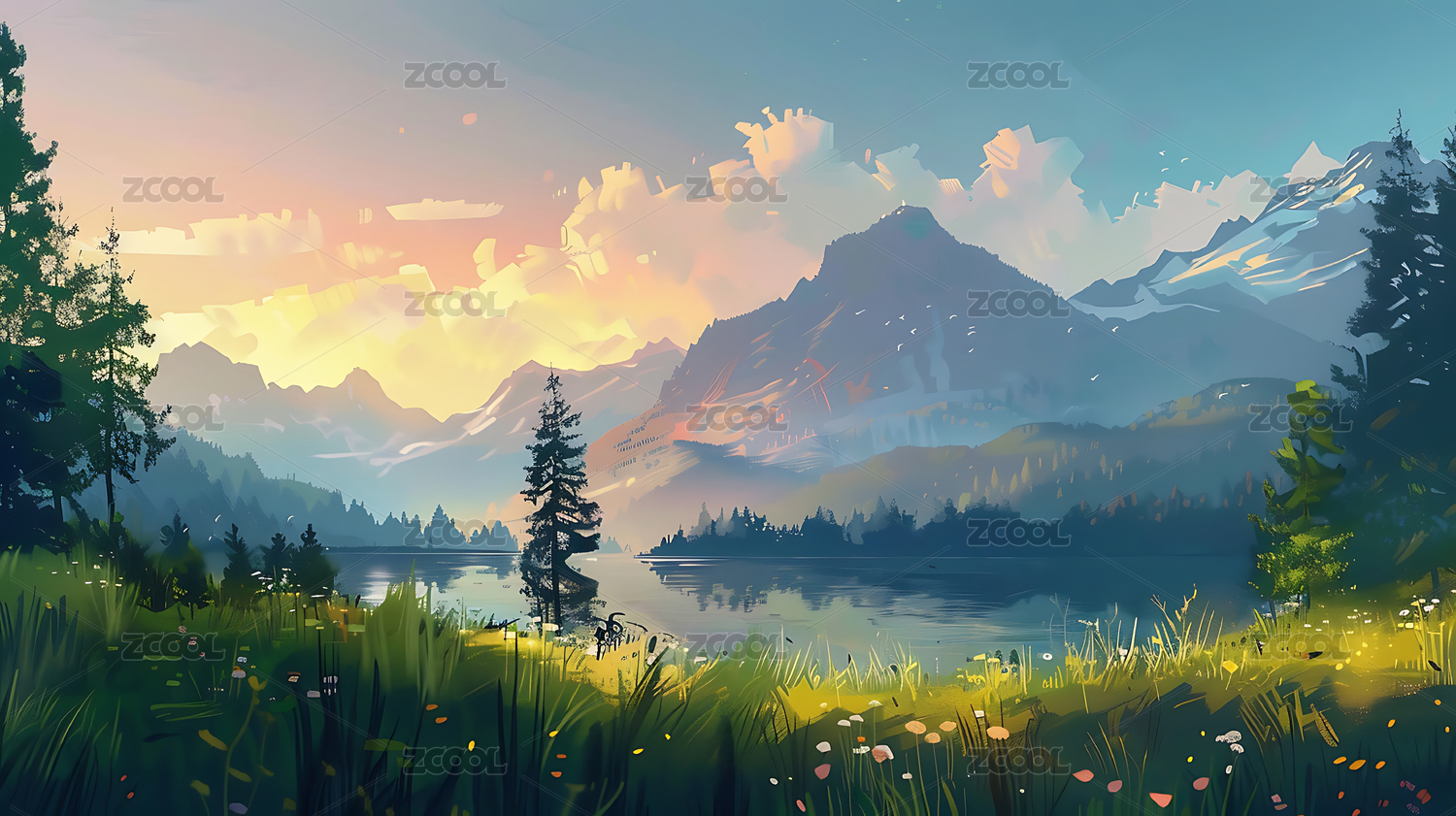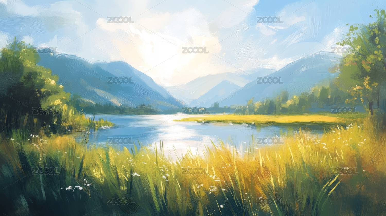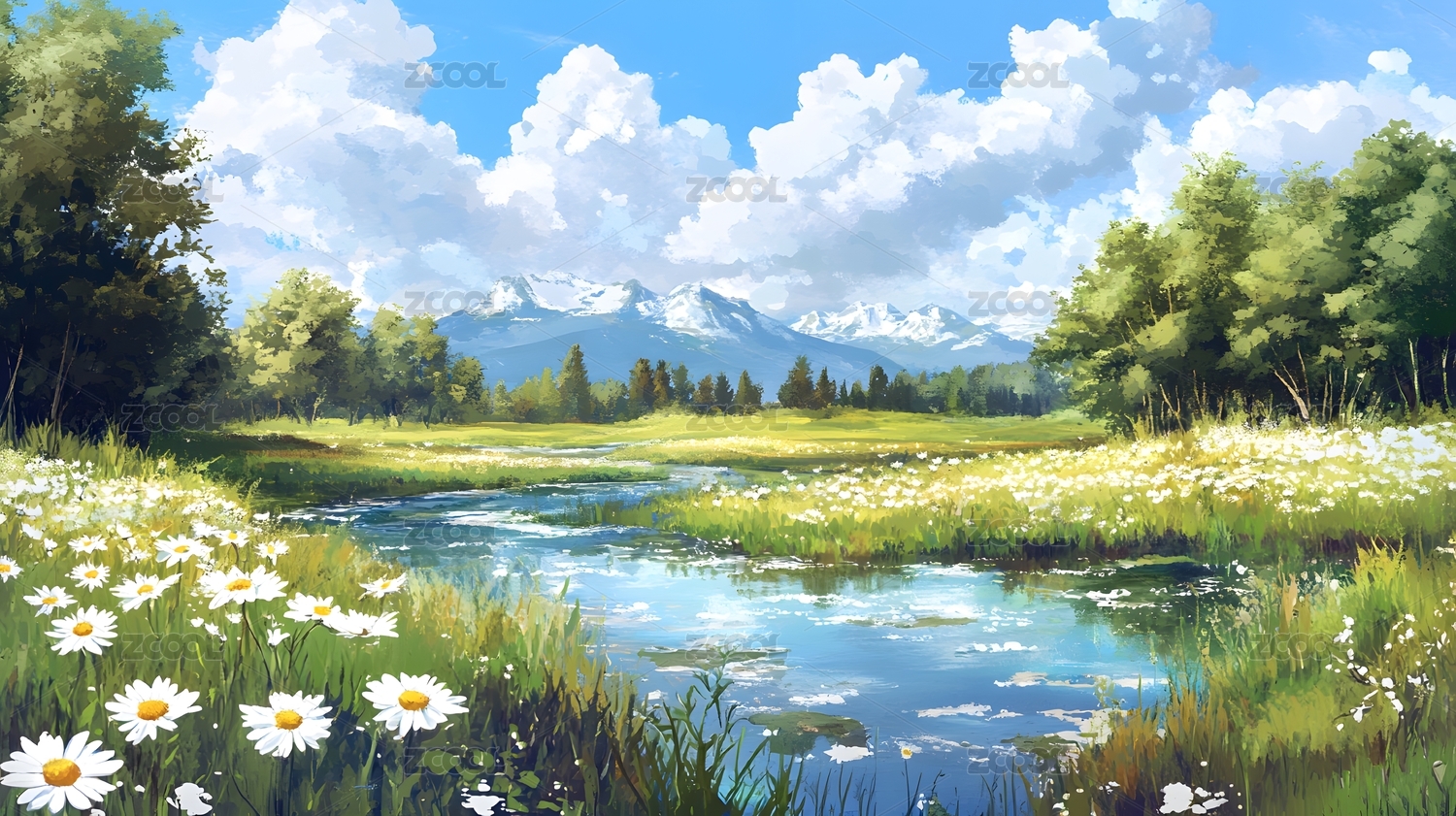 花场,阳光,蔚蓝,水彩,天空,盛开,野花,旅行,雏菊,花卉