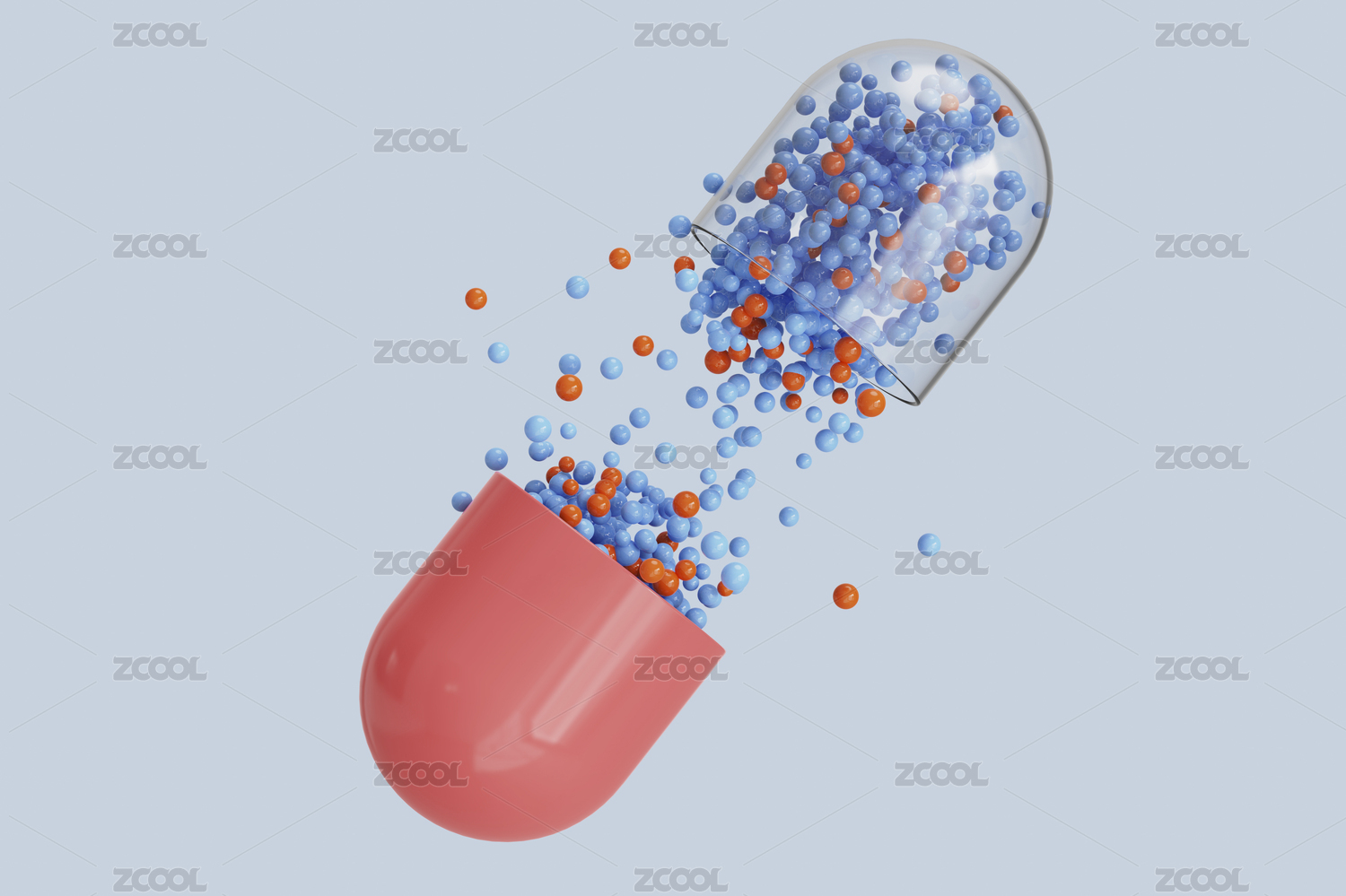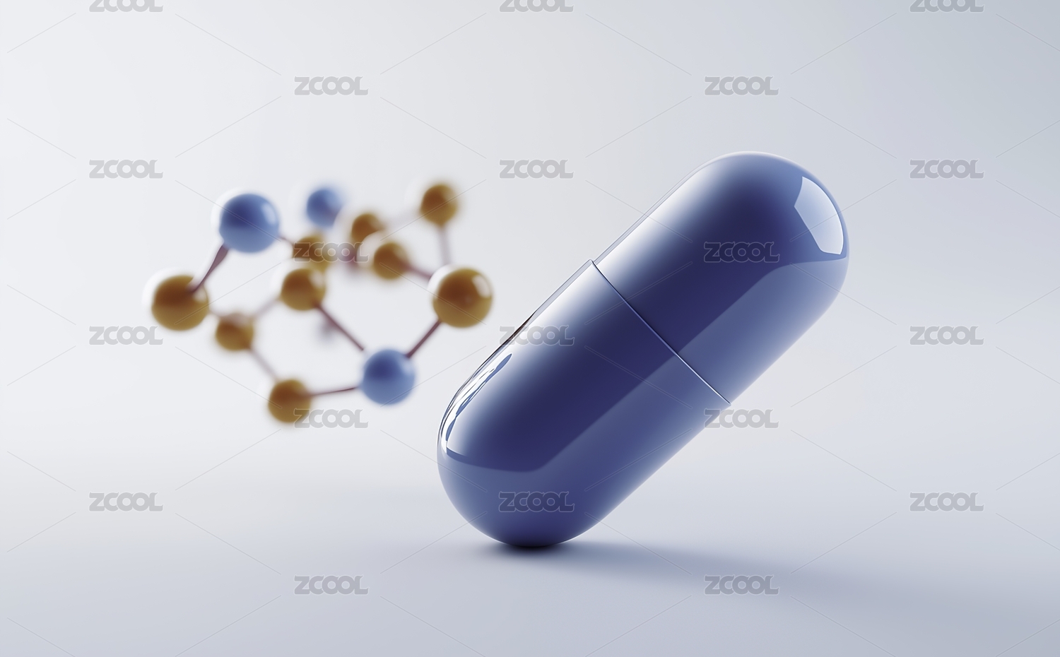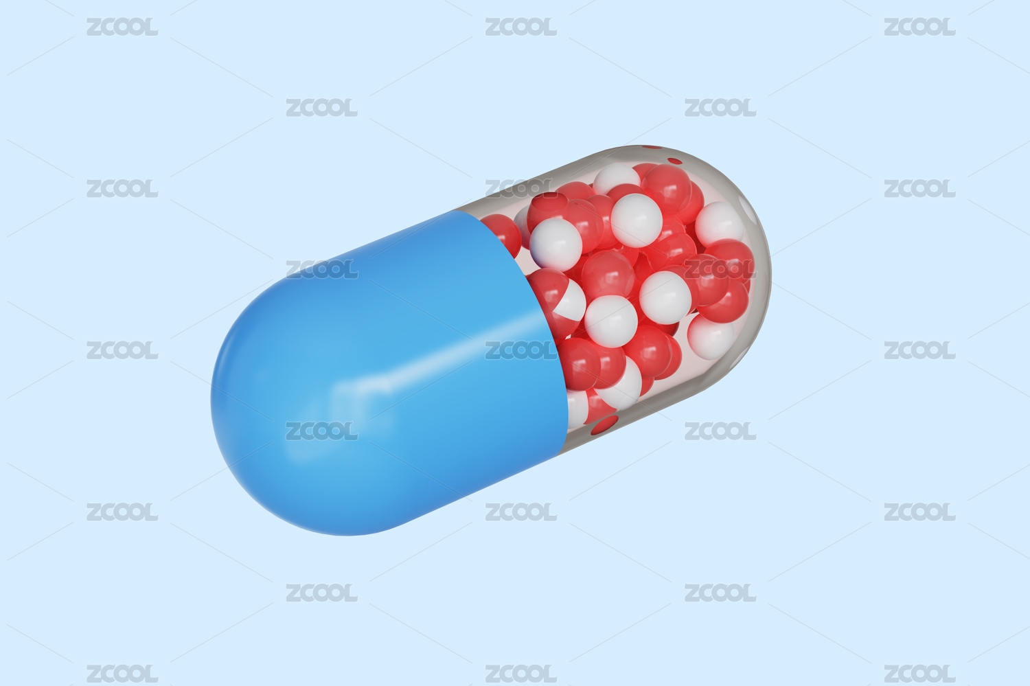 三维,立体,建模,渲染,胶囊,药物,3D,黄色,蓝色