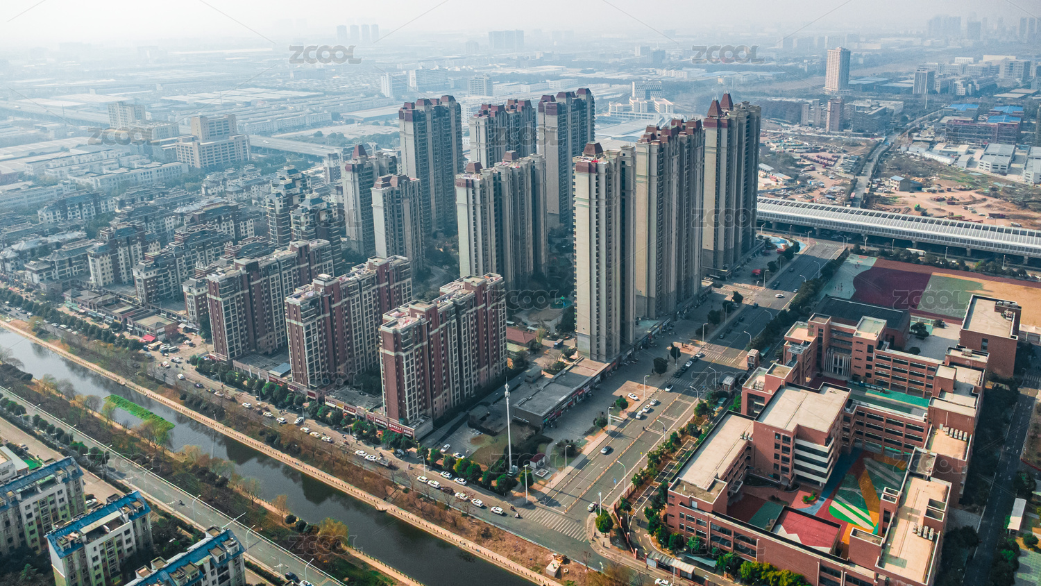 航拍城市高层住宅楼商品房楼盘小区河南郑州