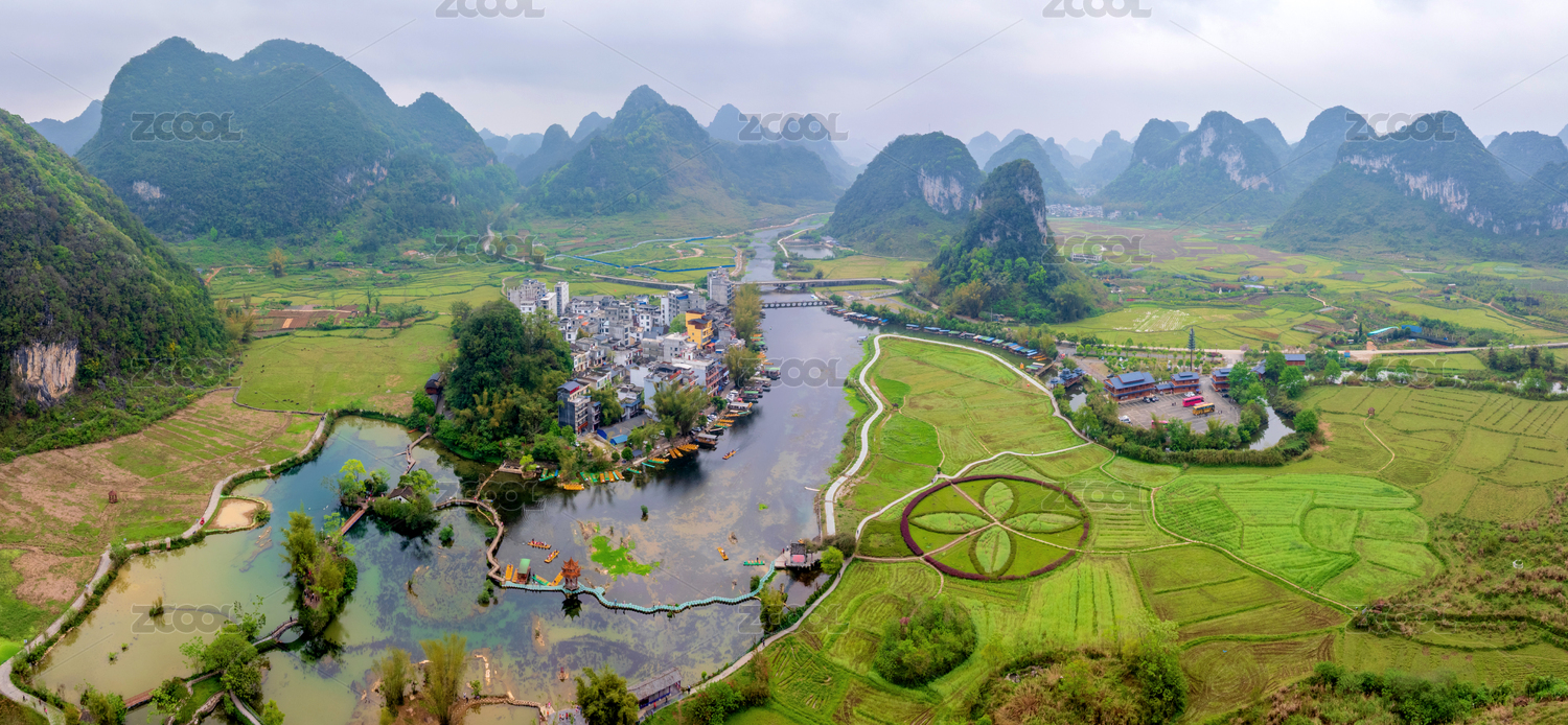 航拍大新明仕田园喀斯特风光