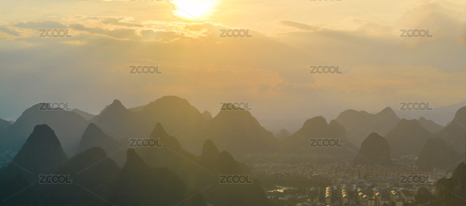 桂林漓江沿岸城市风景及自然风光日落晚霞