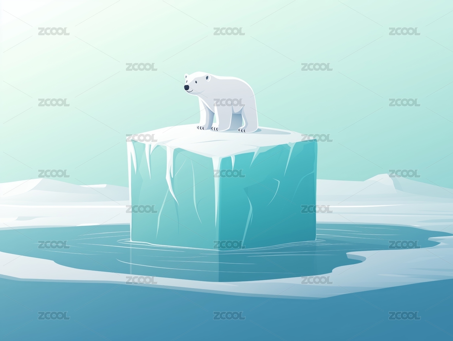 卡通北极熊冰川