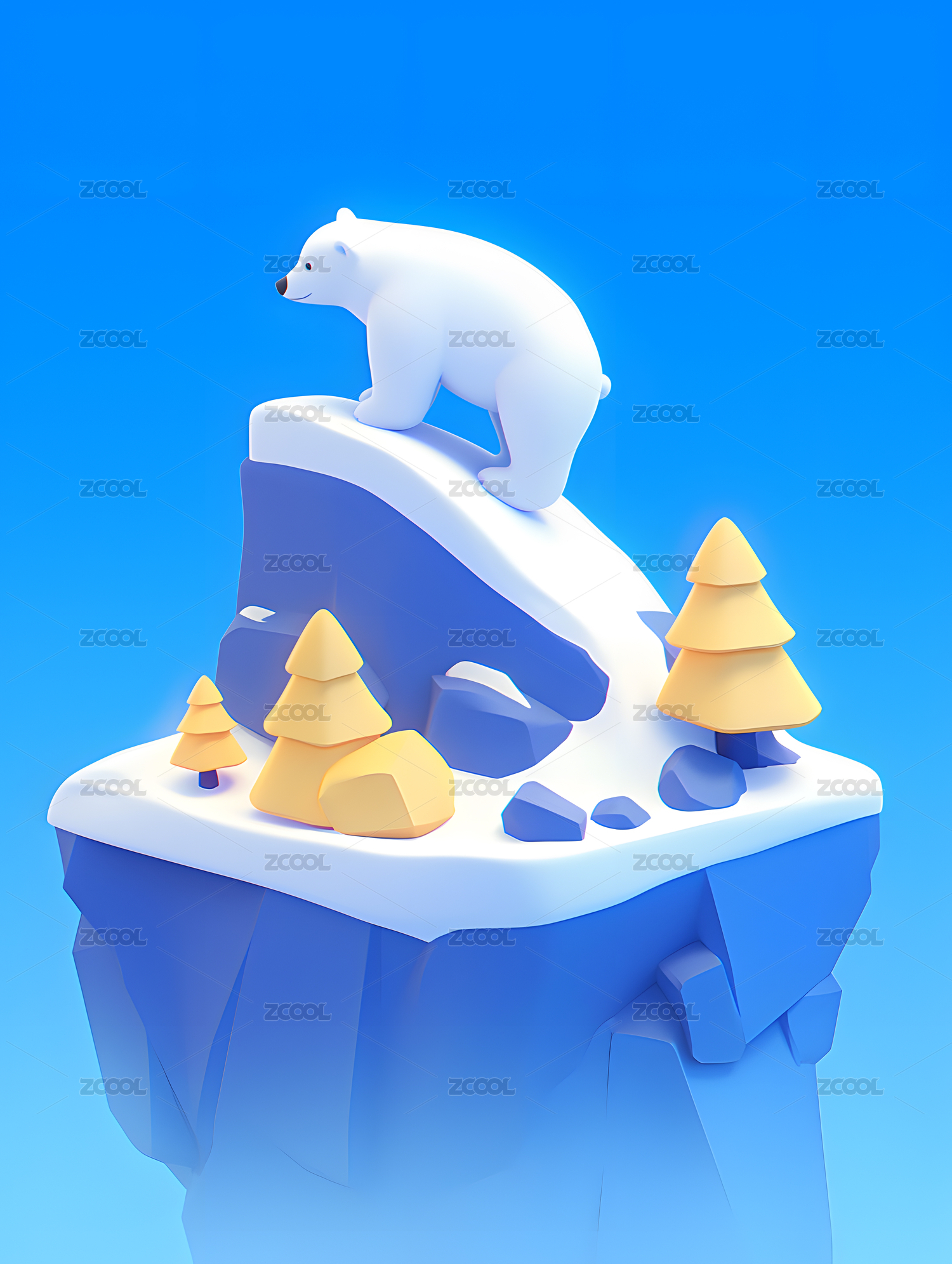 可爱的北极熊坐在冰川上3D插画