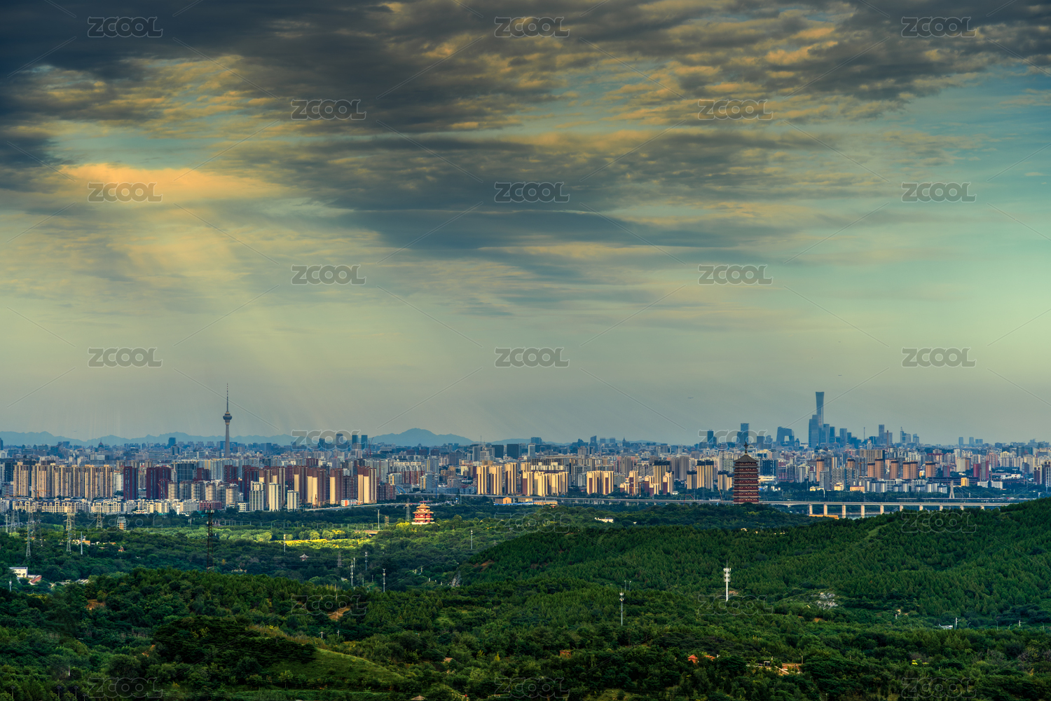 北京南苑森林湿地公园观景台眺望国贸商务区