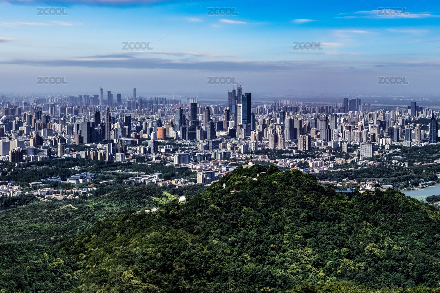 江苏省南京市紫金山顶眺望主城区高楼建筑