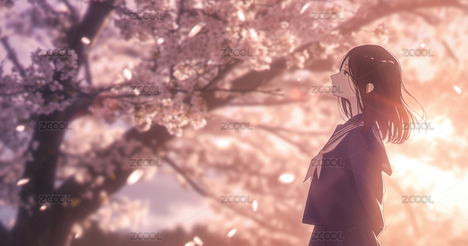 二次元,女性,女孩,花瓣,少女,室外,树木,背影,唯美,宁静