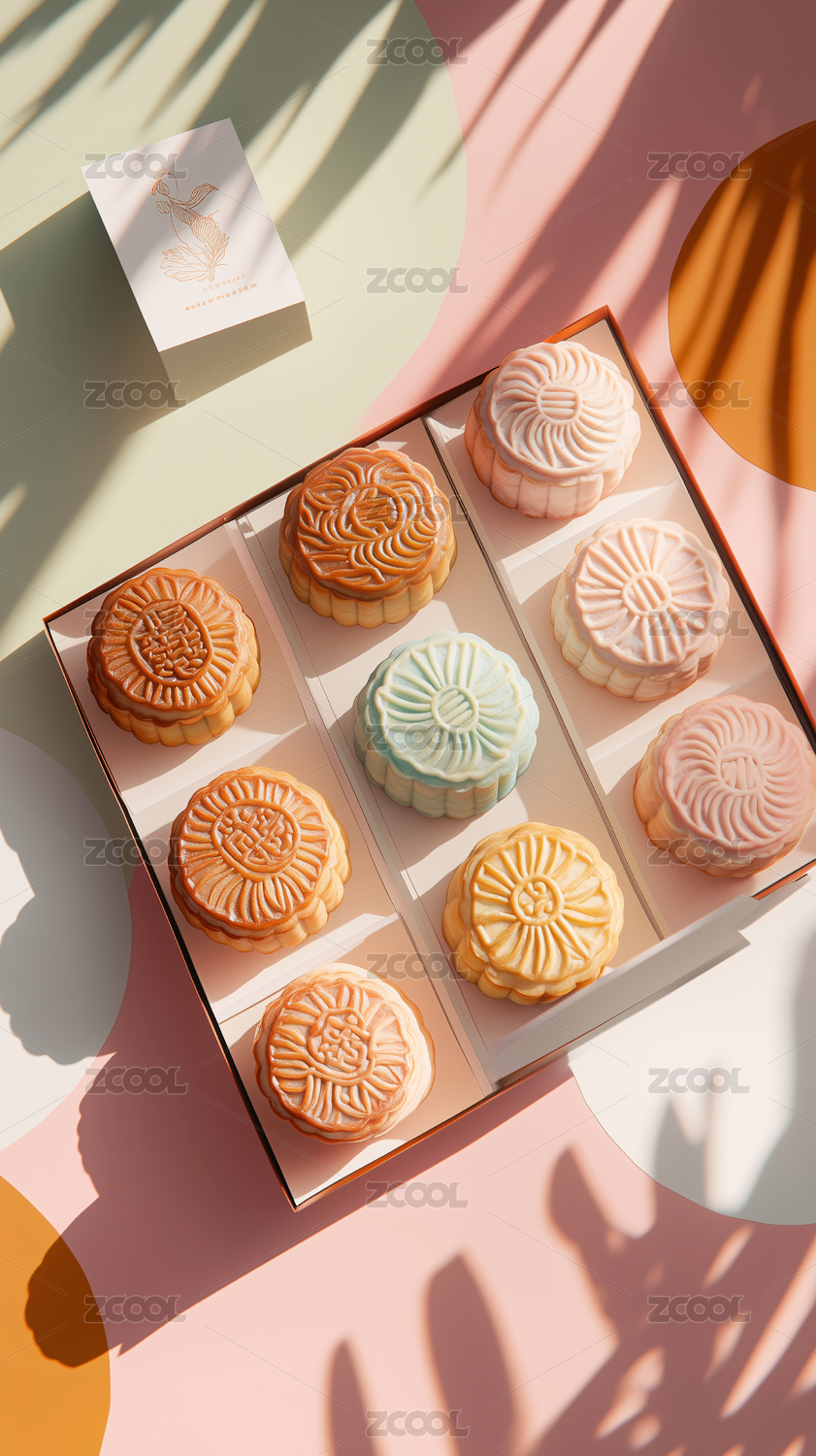 俯视角月饼包装排列