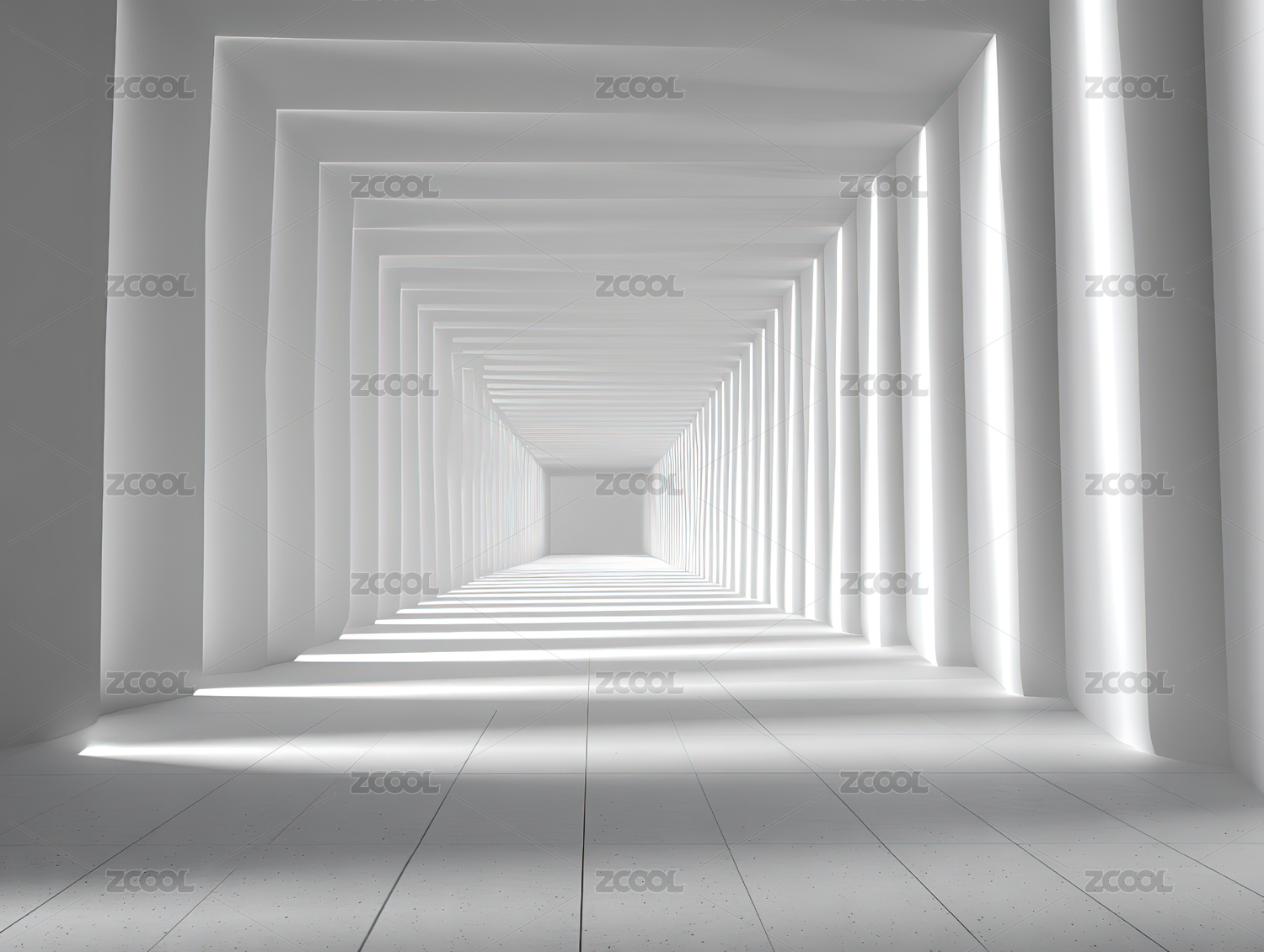 抽象,未来, 科技, 空间, 设计, 白色, 走廊, 灯光, 建筑, 通道