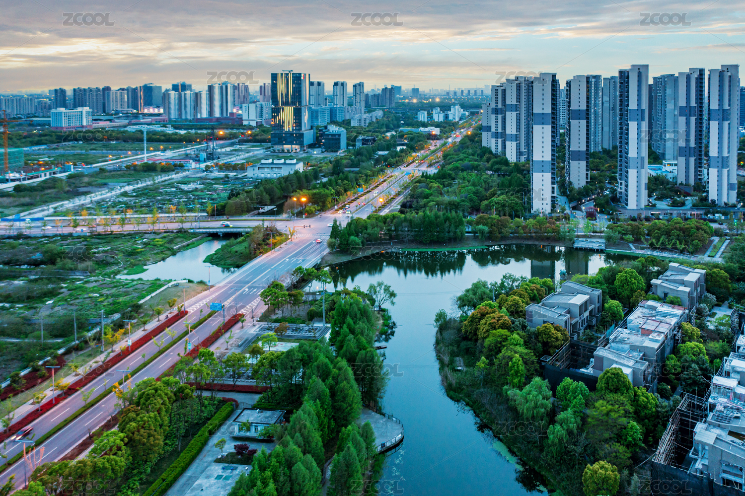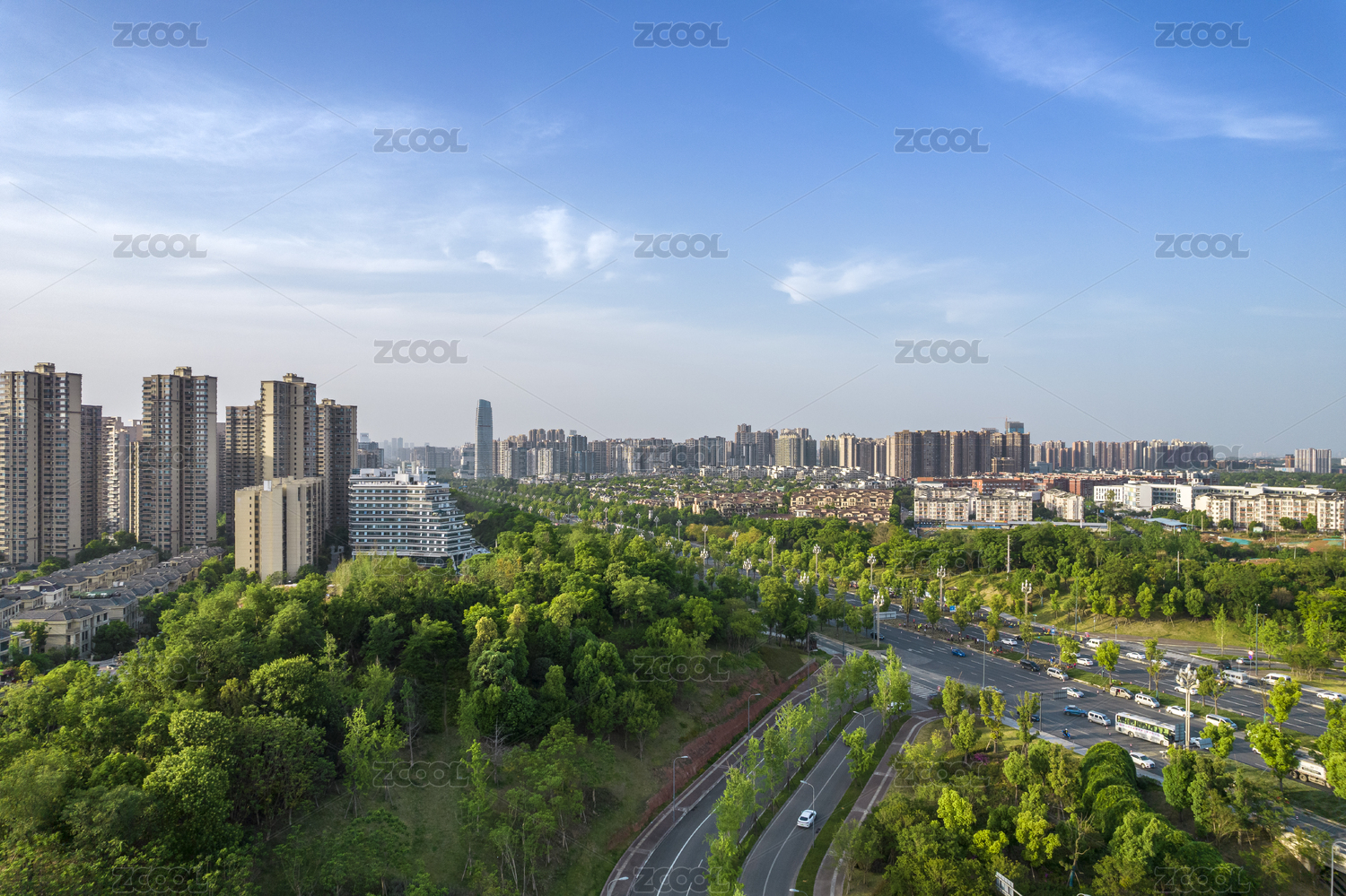 成都天府大道与天府公园航拍