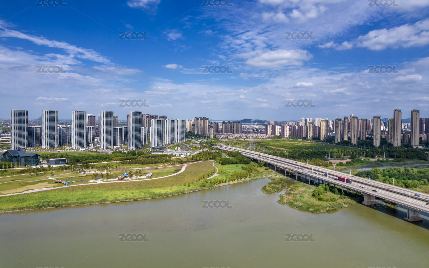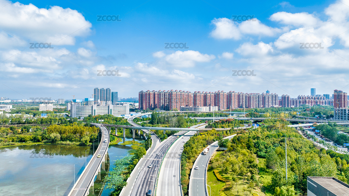 盛夏蓝天下芜湖城市快速路网航拍