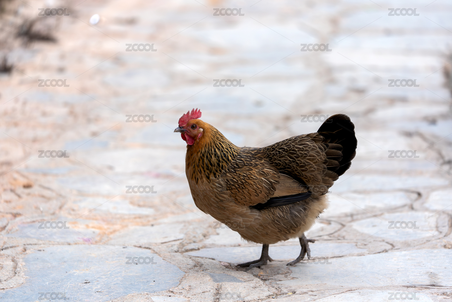 家禽母鸡在觅食