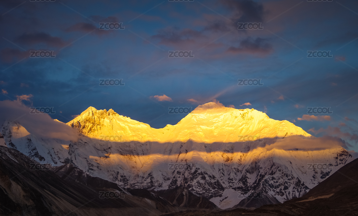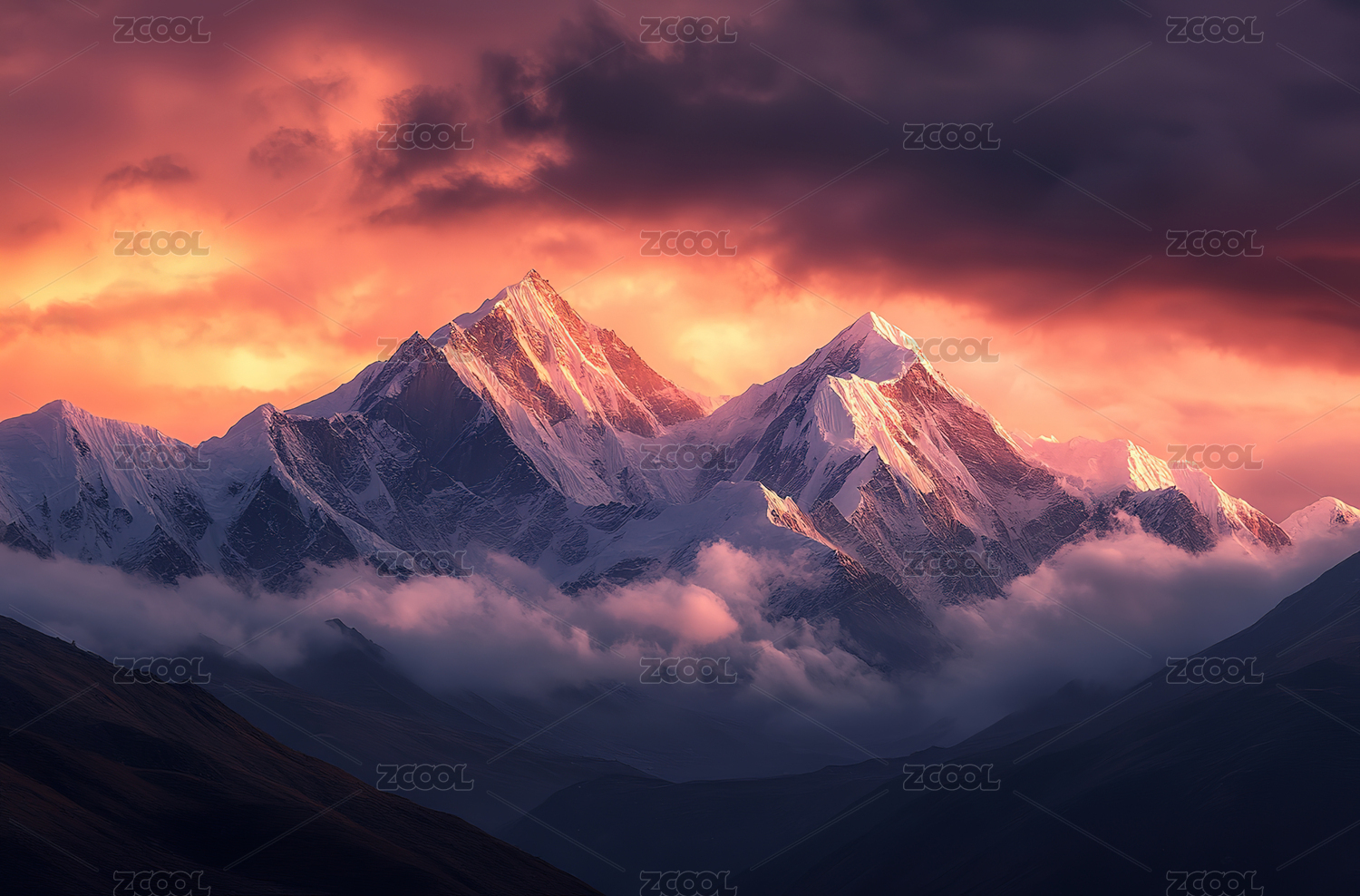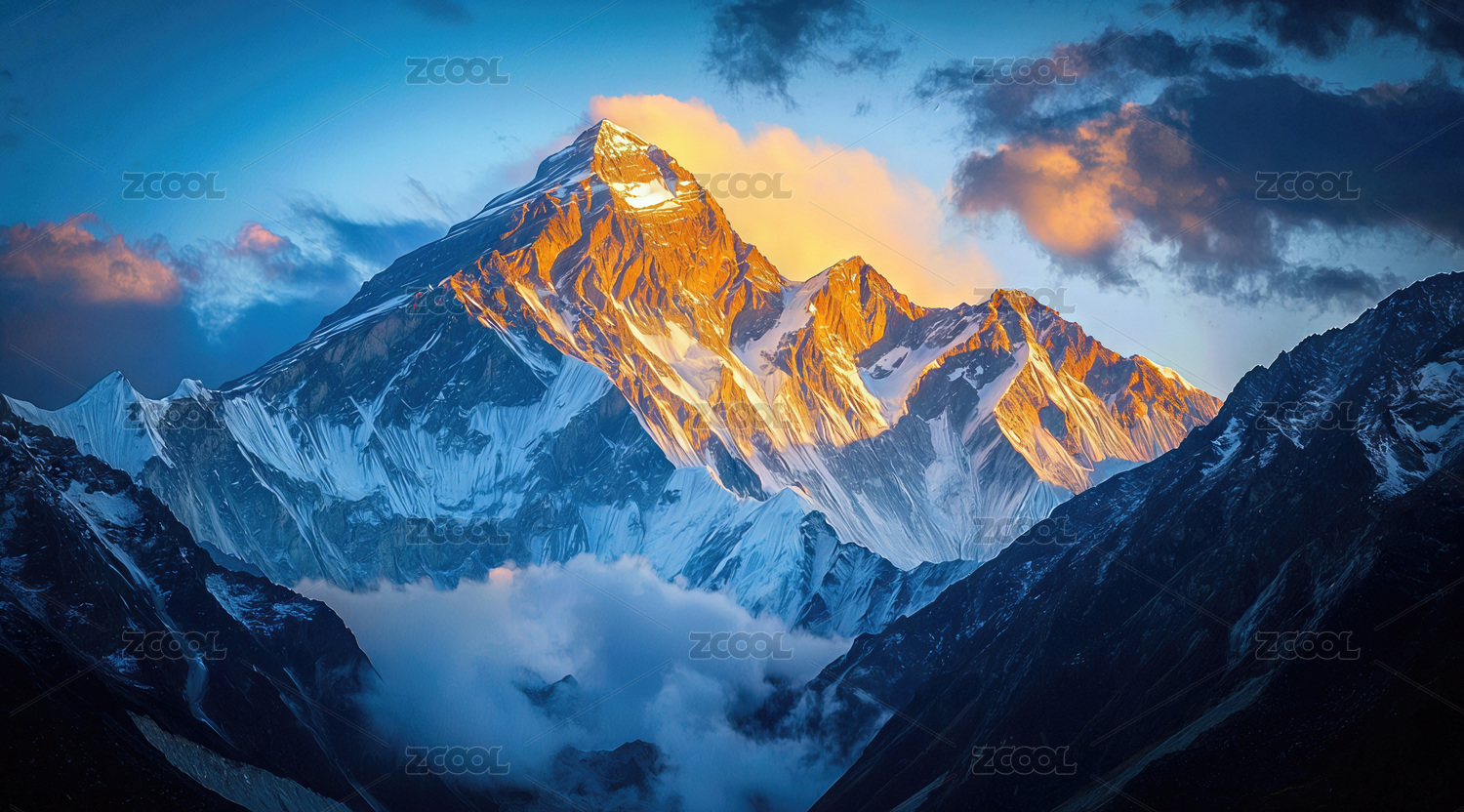 白雪皑皑的群山在晴朗的天空中俯瞰