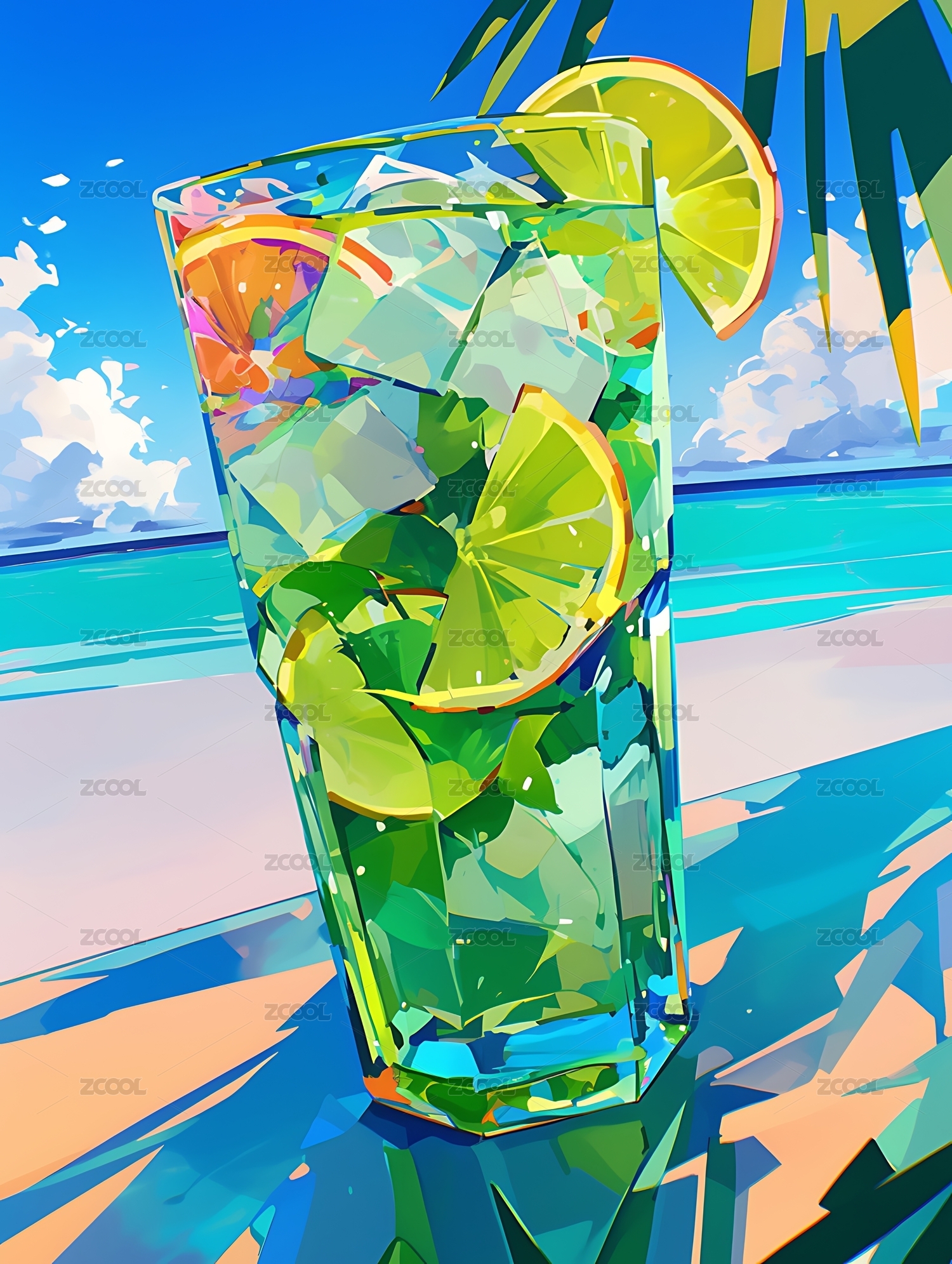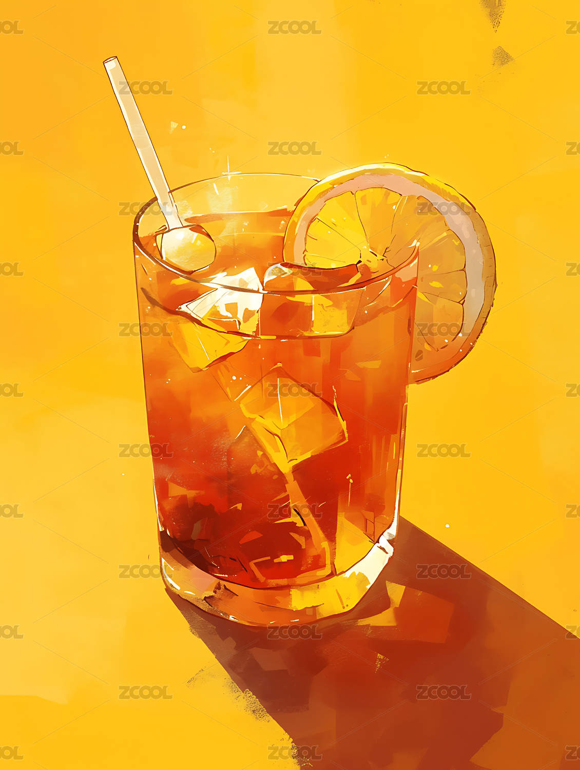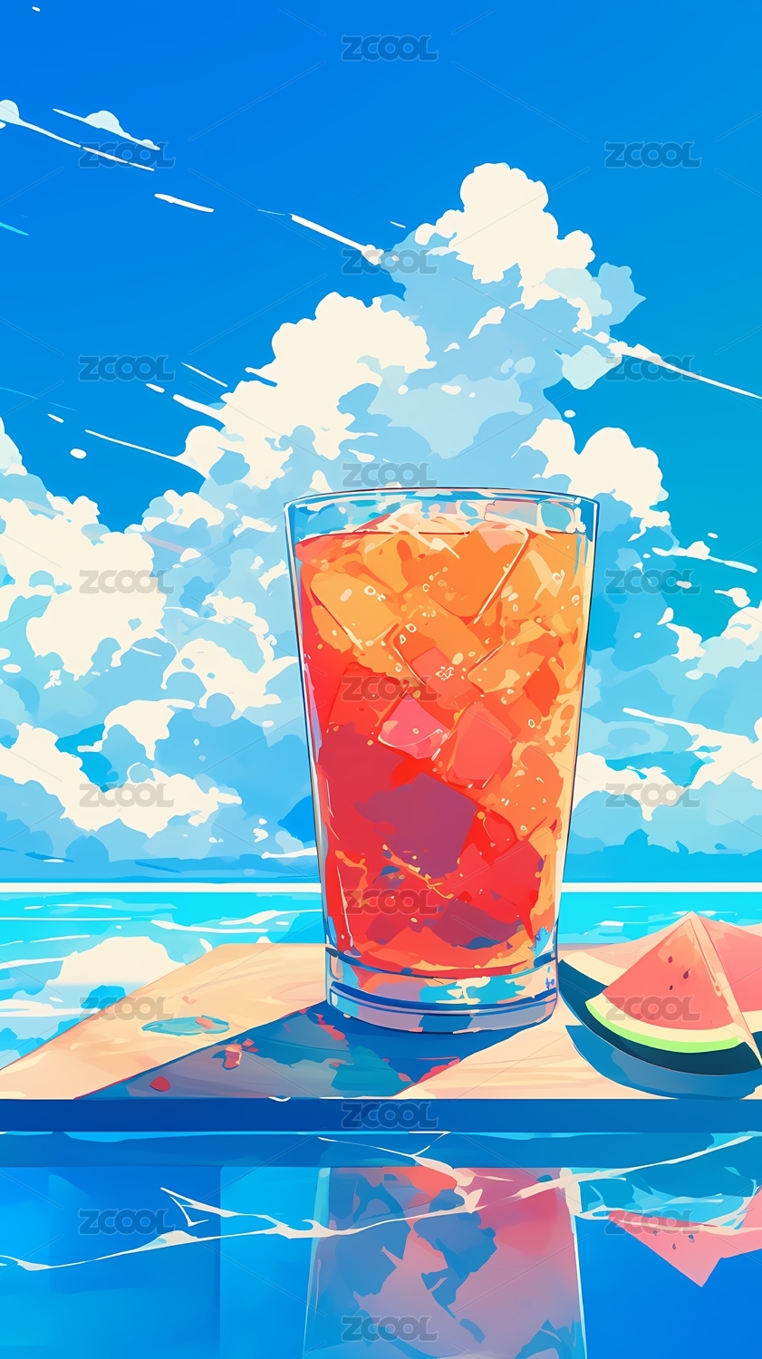 套着游泳圈漂浮在水面上的夏日冷饮,创意插