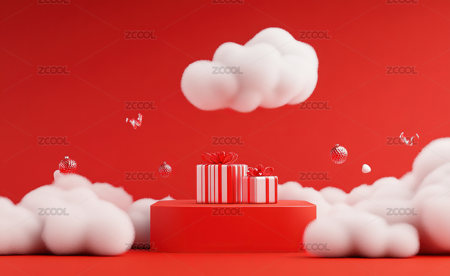 红色礼物盒和圆形展示台