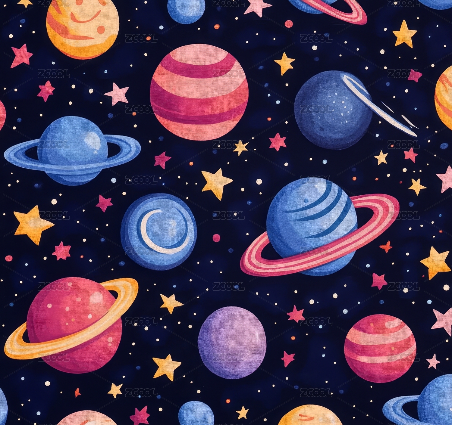 宇宙太空行星无缝平铺图案