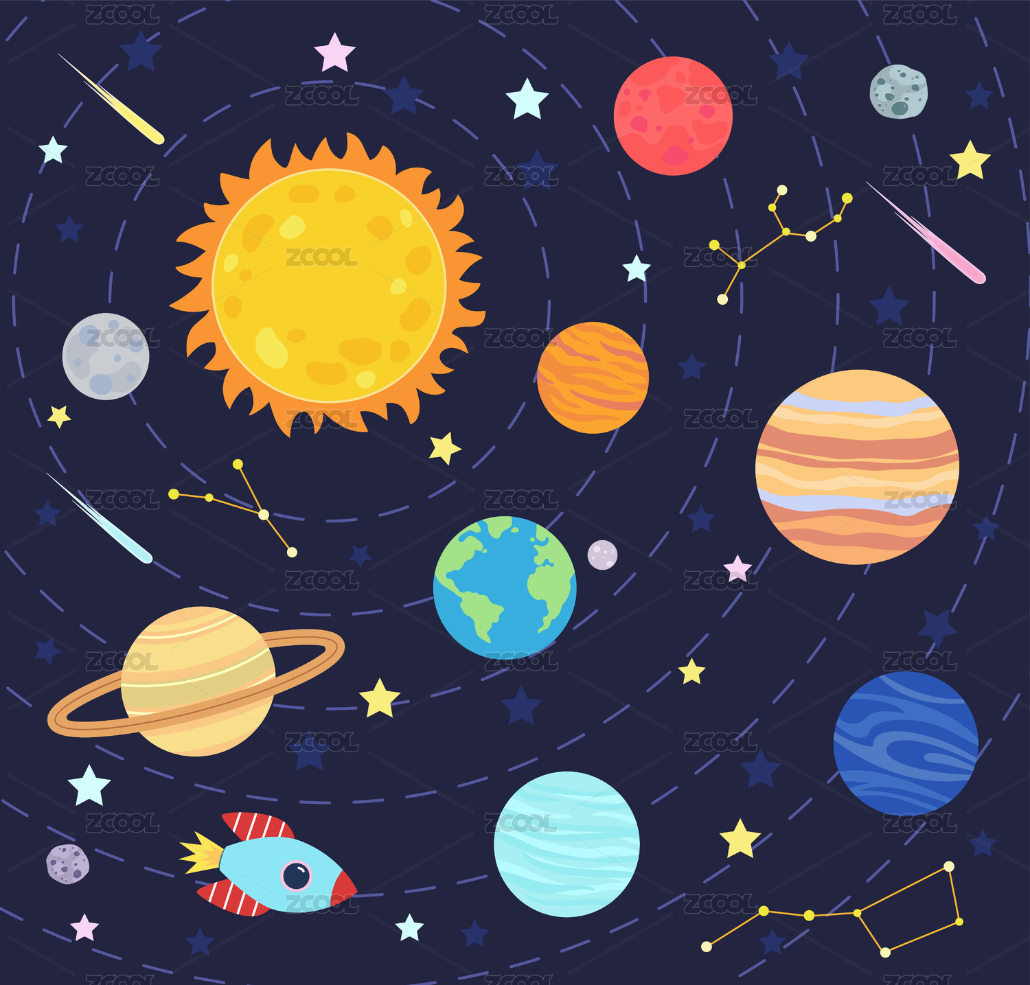 卡通宇宙星球星空