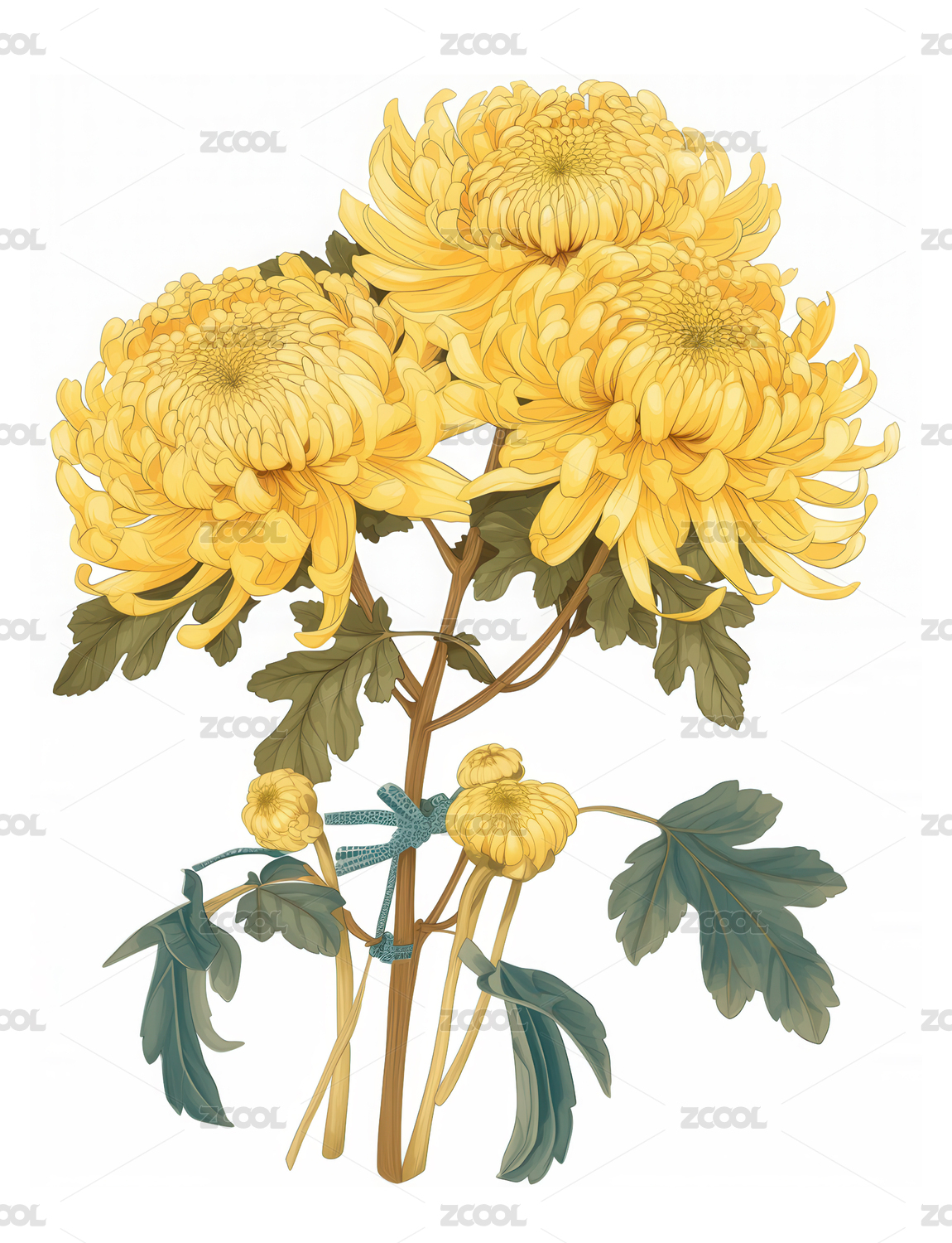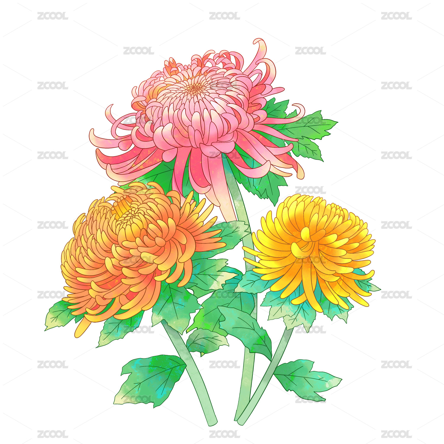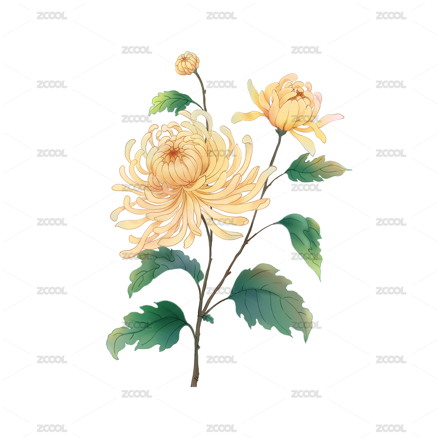 手绘水彩菊花金丝皇菊花卉中药材插画