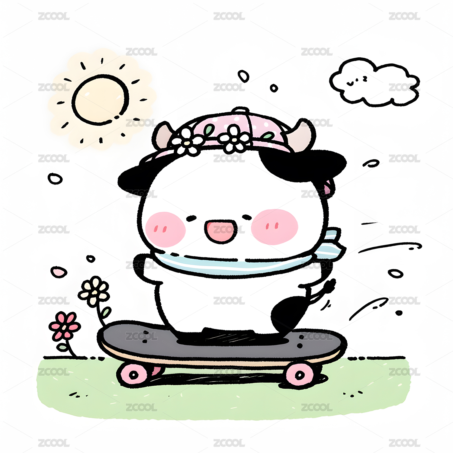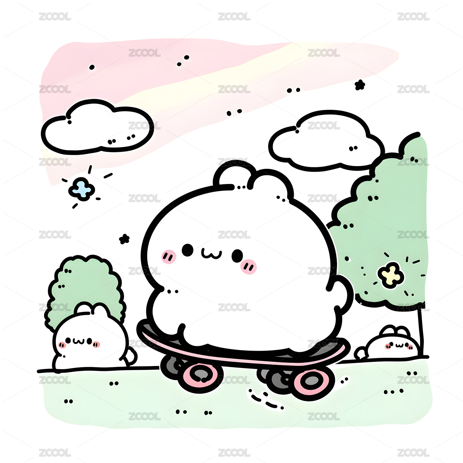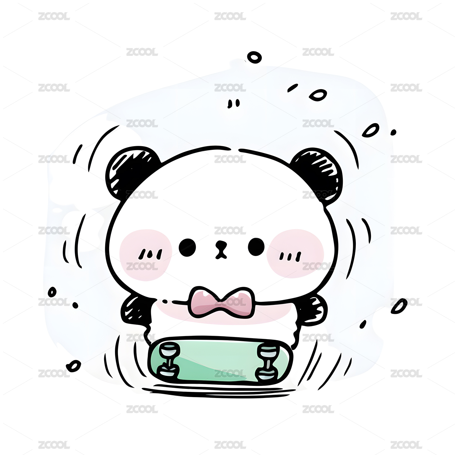 线条,风格,滑板,玩耍,动物,快乐,可爱,呆萌,手绘,多巴胺