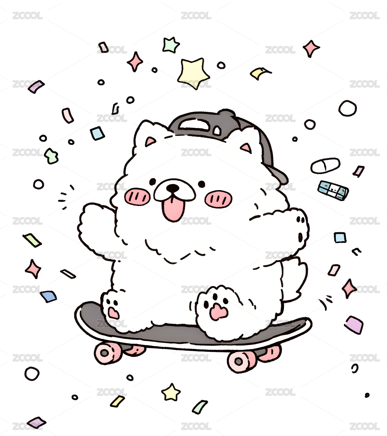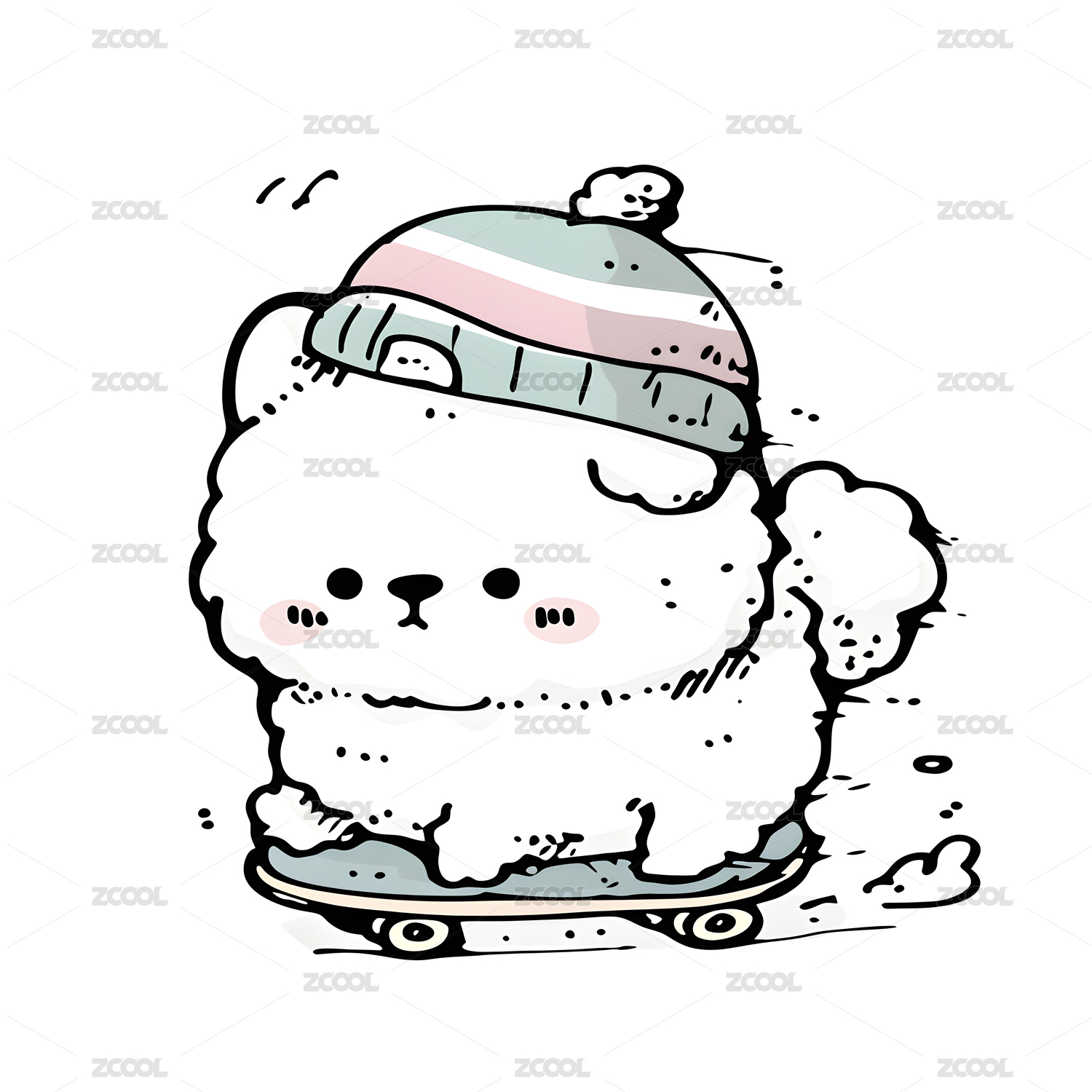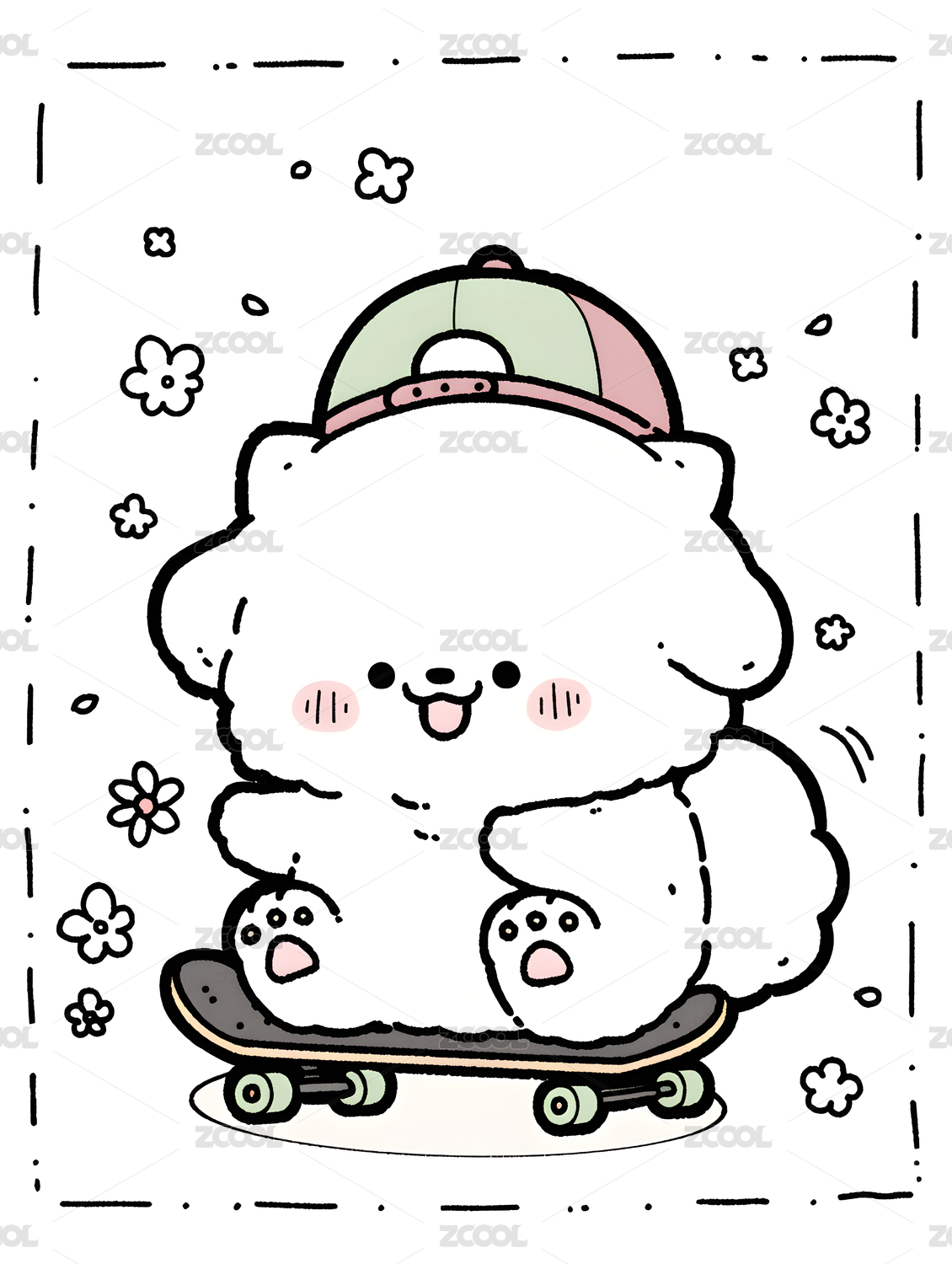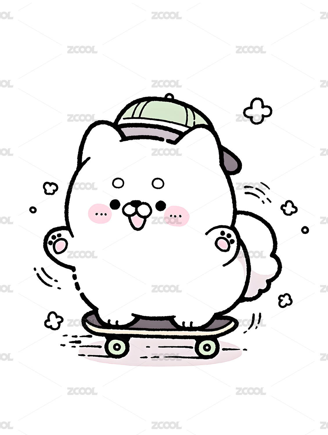 线条,风格,滑板,玩耍,小狗,动物,宠物,快乐,可爱,呆萌