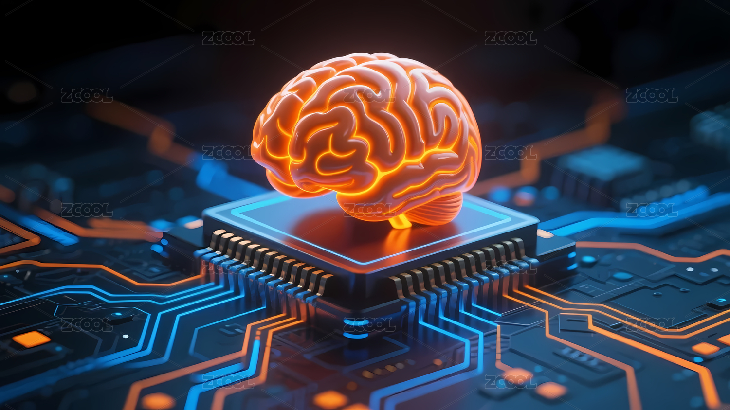 科技感芯片与发光大脑图像