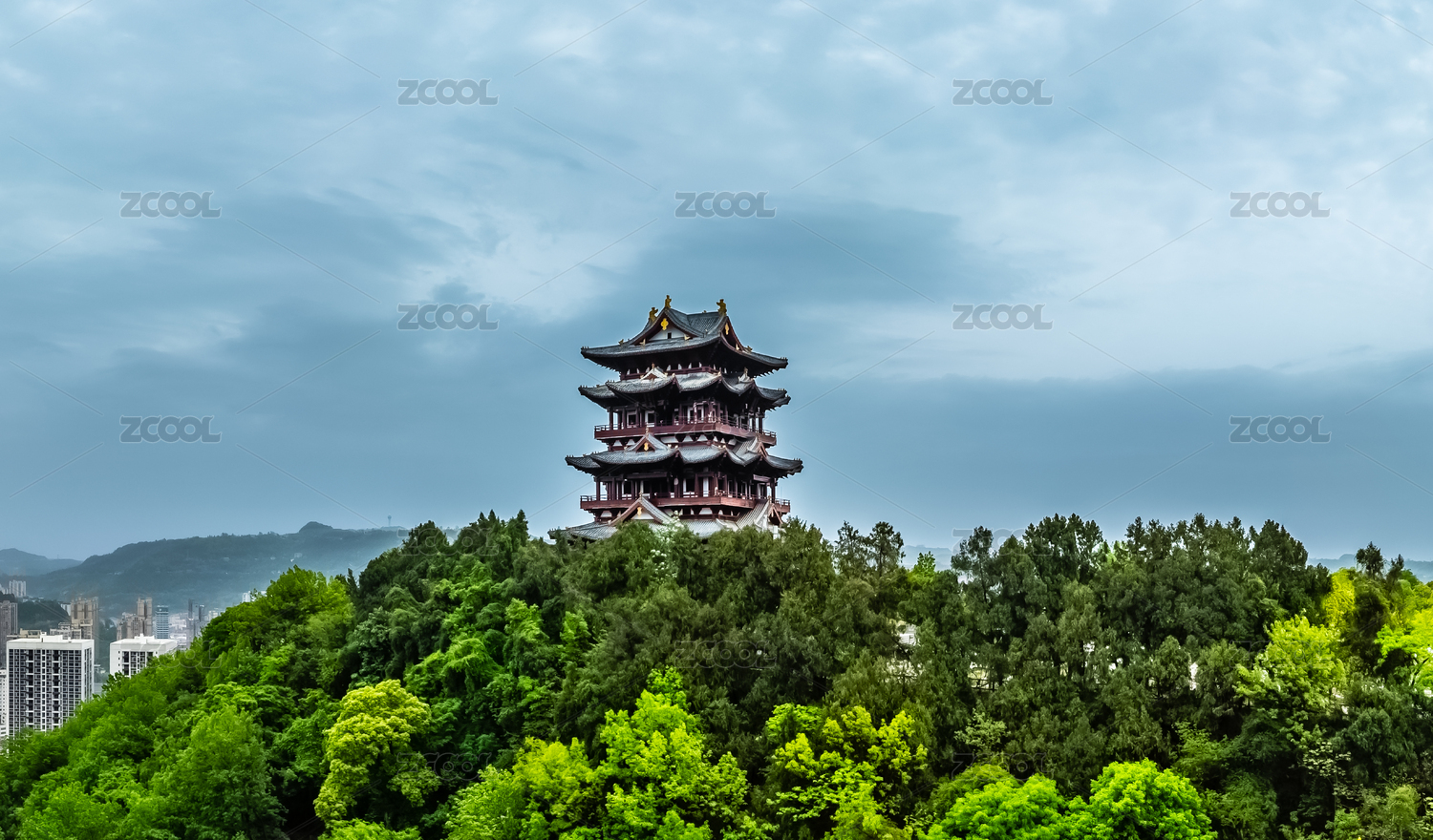 中国四川省巴中市南龛山飞霞阁园林建筑