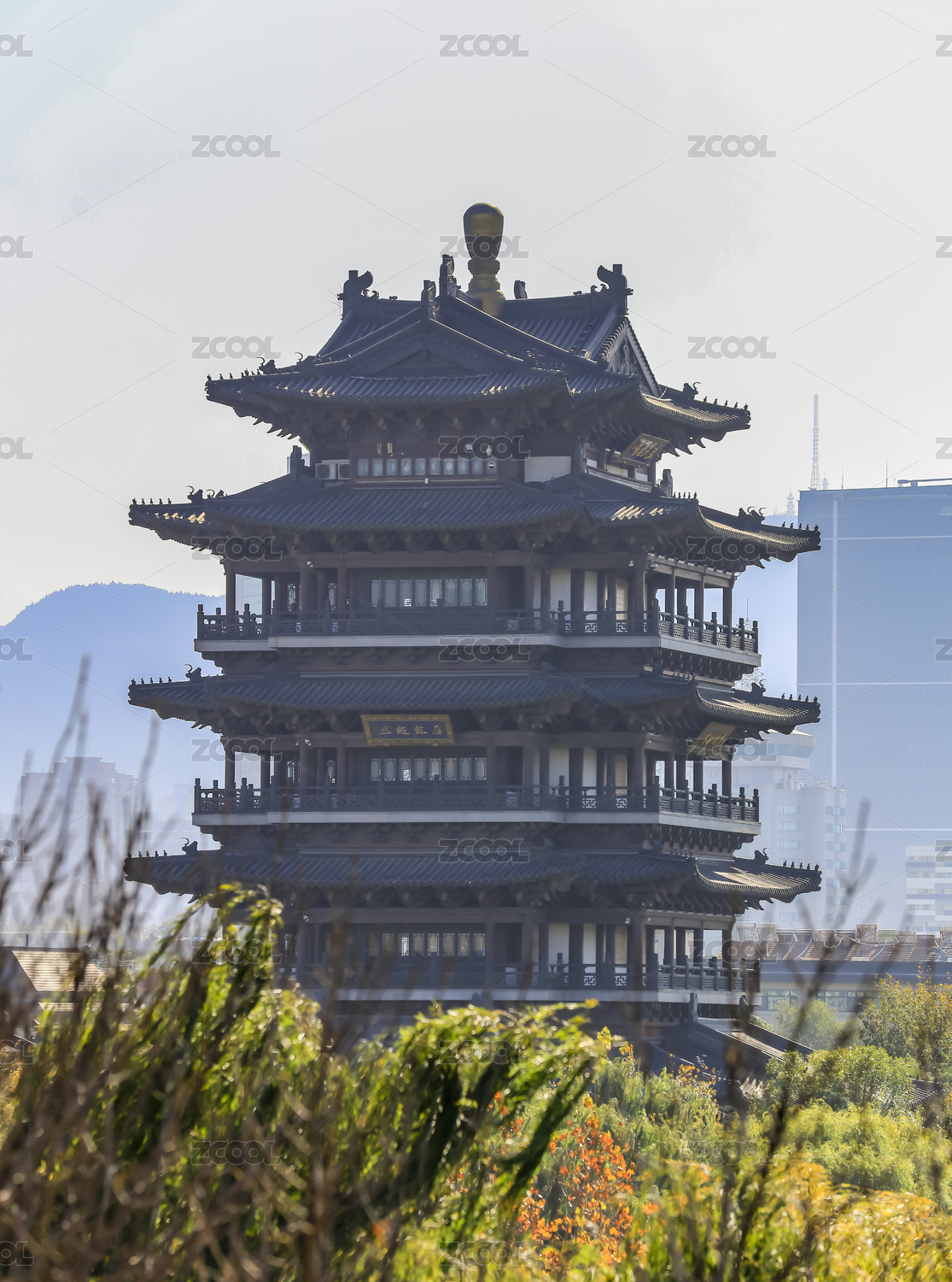 中国广东肇庆府城遗址公园和披云楼古建筑景