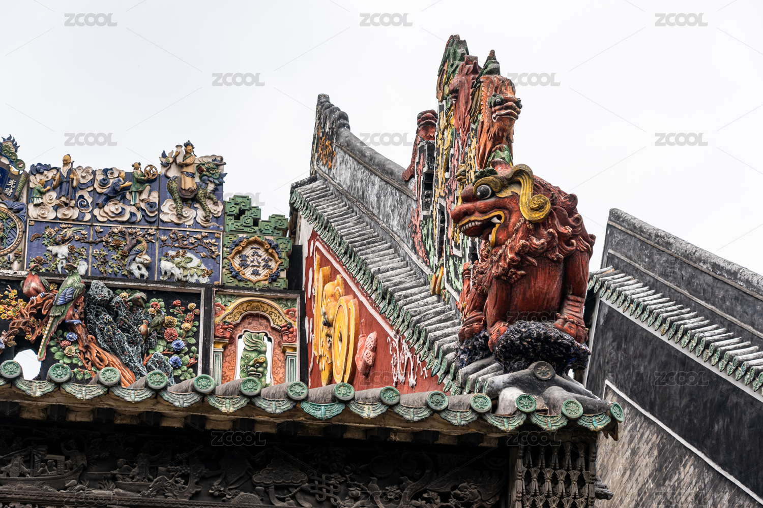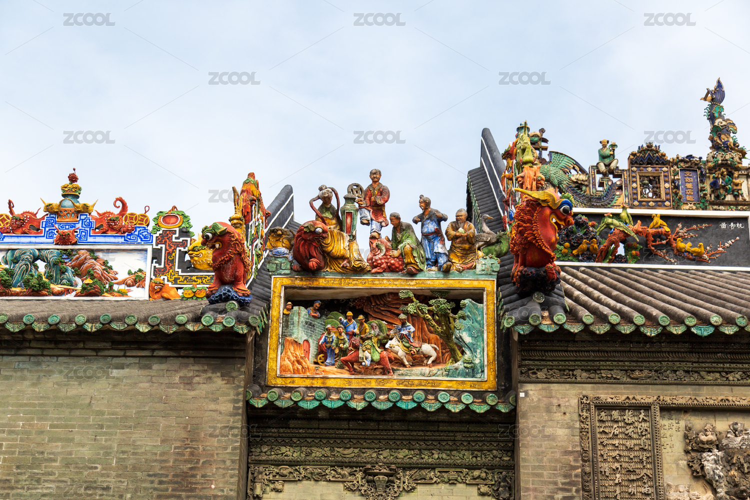 中国广州陈家祠岭南建筑屋顶灰塑陶塑