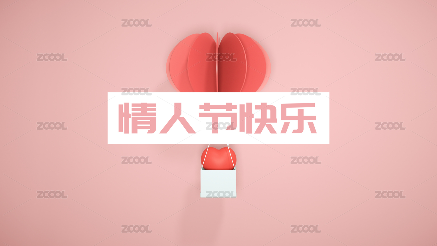 写着情人节快乐的剪纸风格的载着爱心的爱心形状的气球