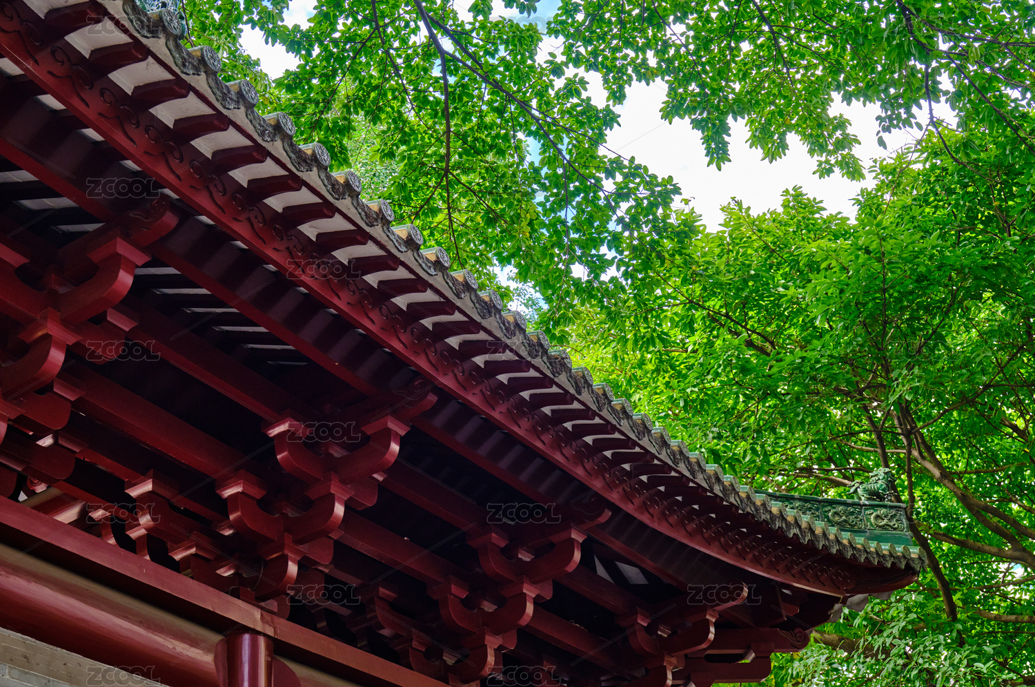 成都杜甫草堂博物馆古建筑屋檐青苔与银杏