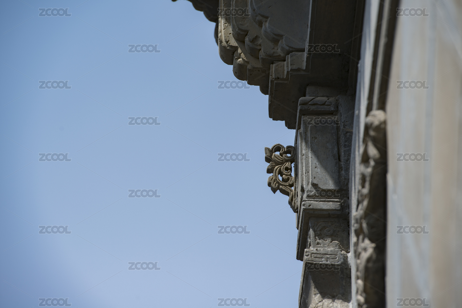 中国北方传统民居建筑内的影壁上立体砖雕花