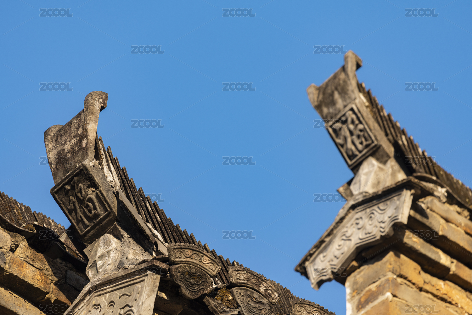 陈家大院(陈家桅杆)屋顶屋脊浮雕装饰细节