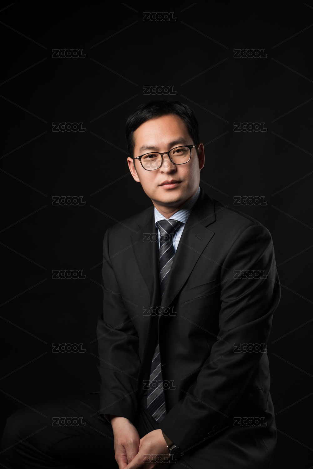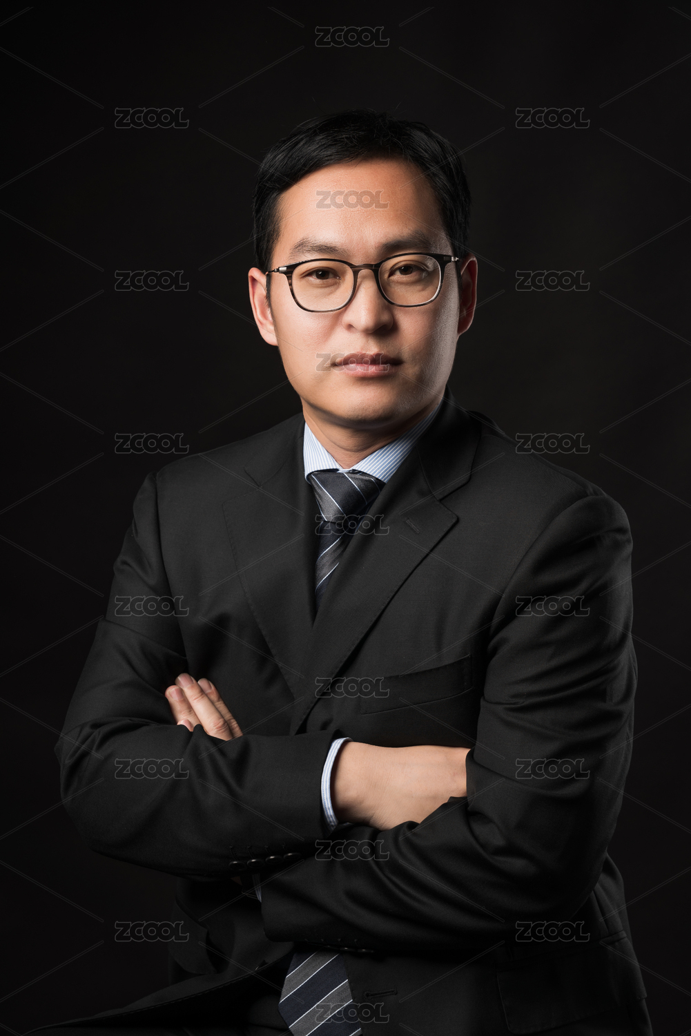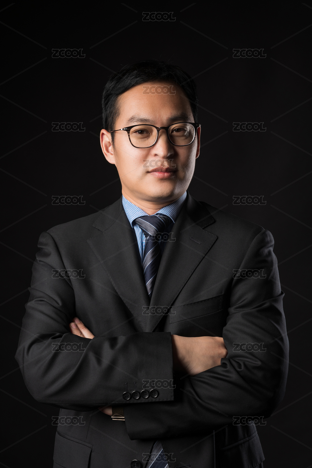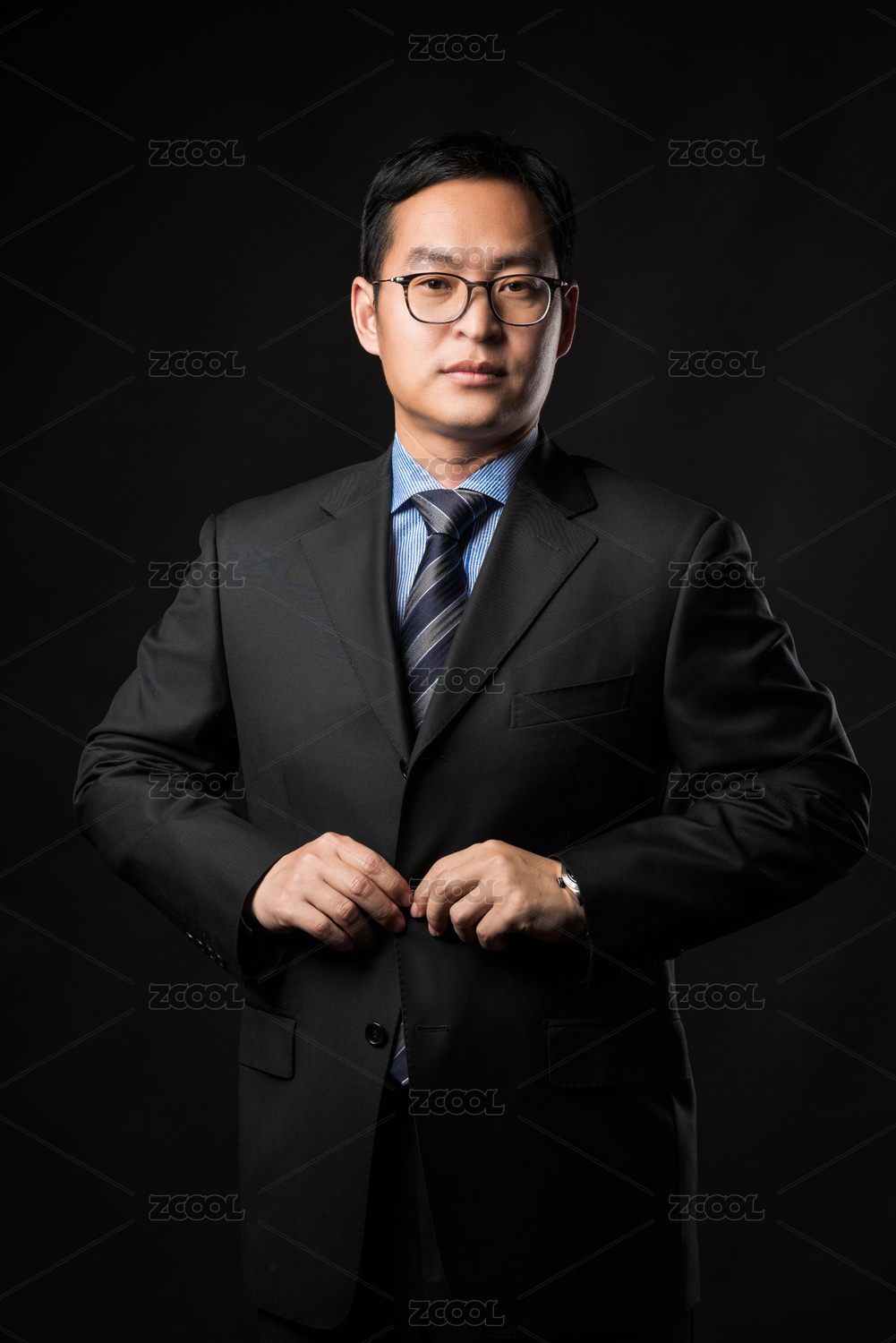 黑色背景前穿西装的亚洲男士