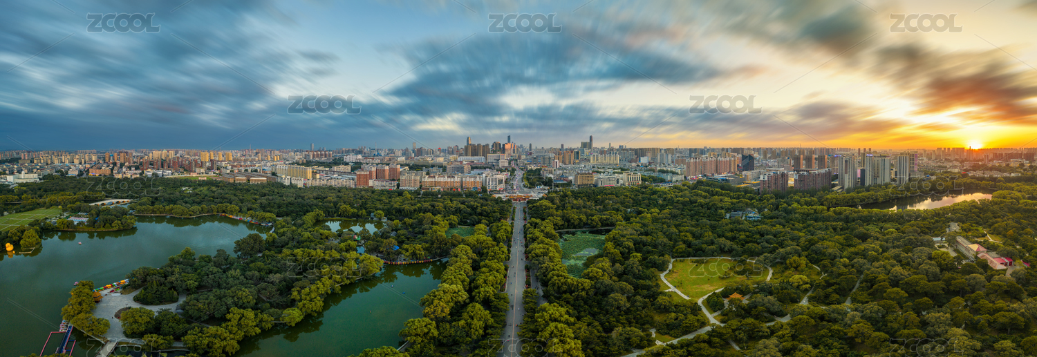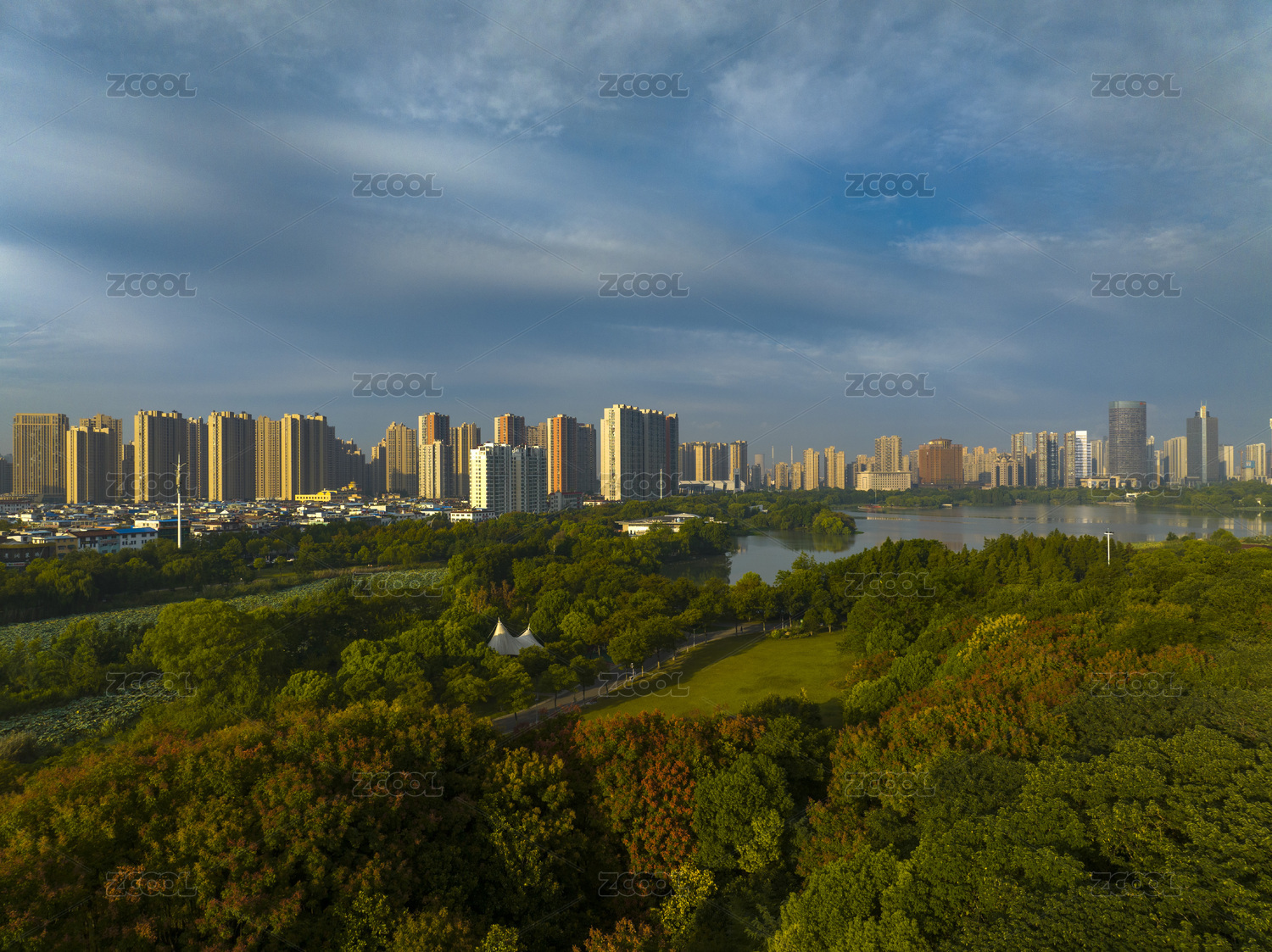 中国四川省成都市青龙湖湿地公园全景航拍图