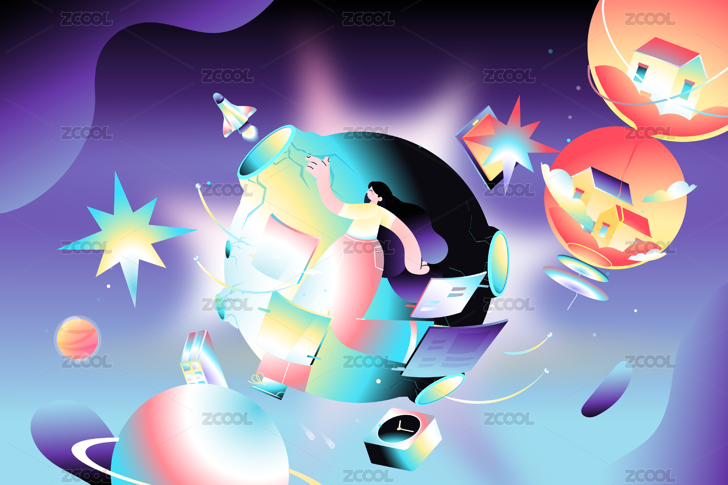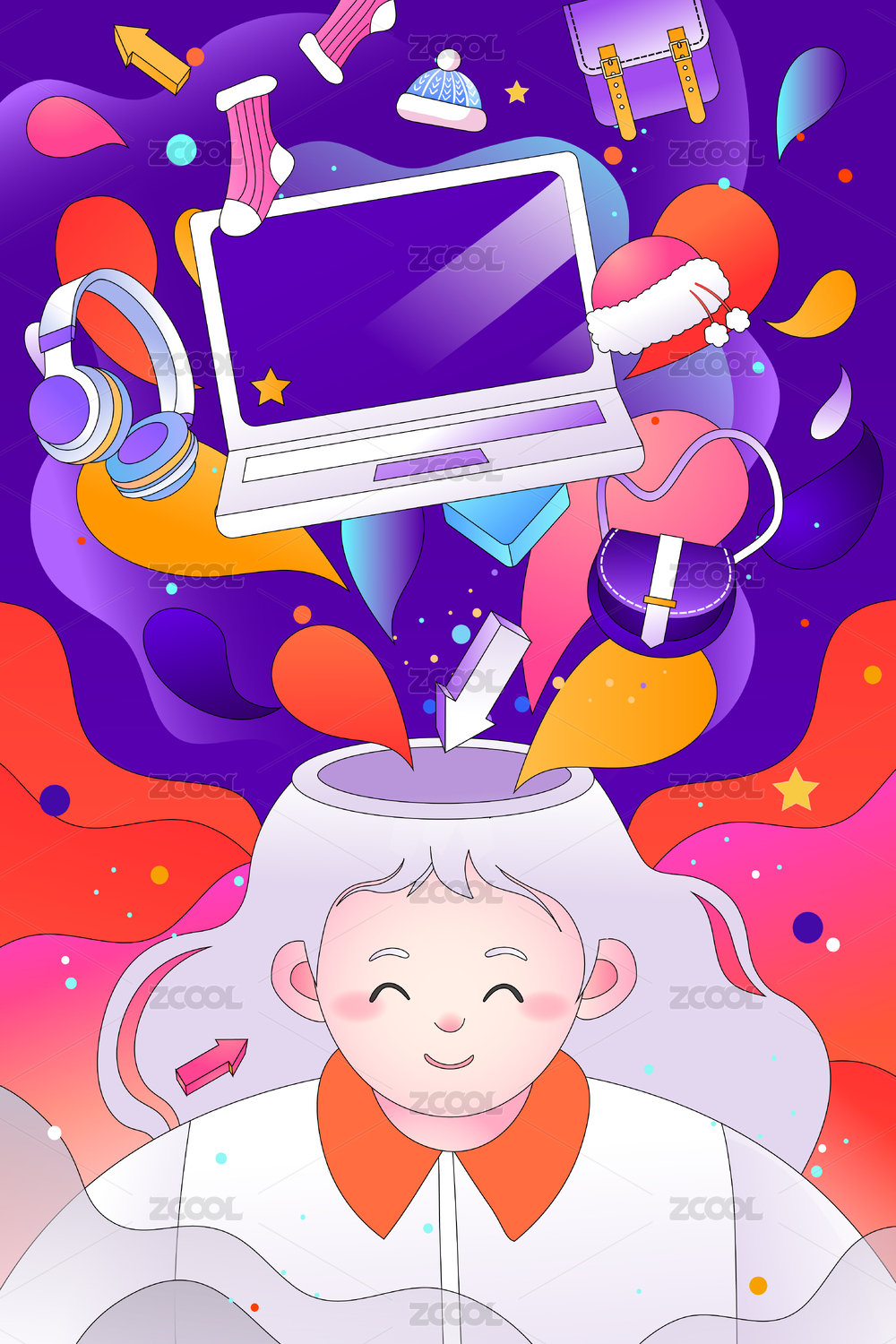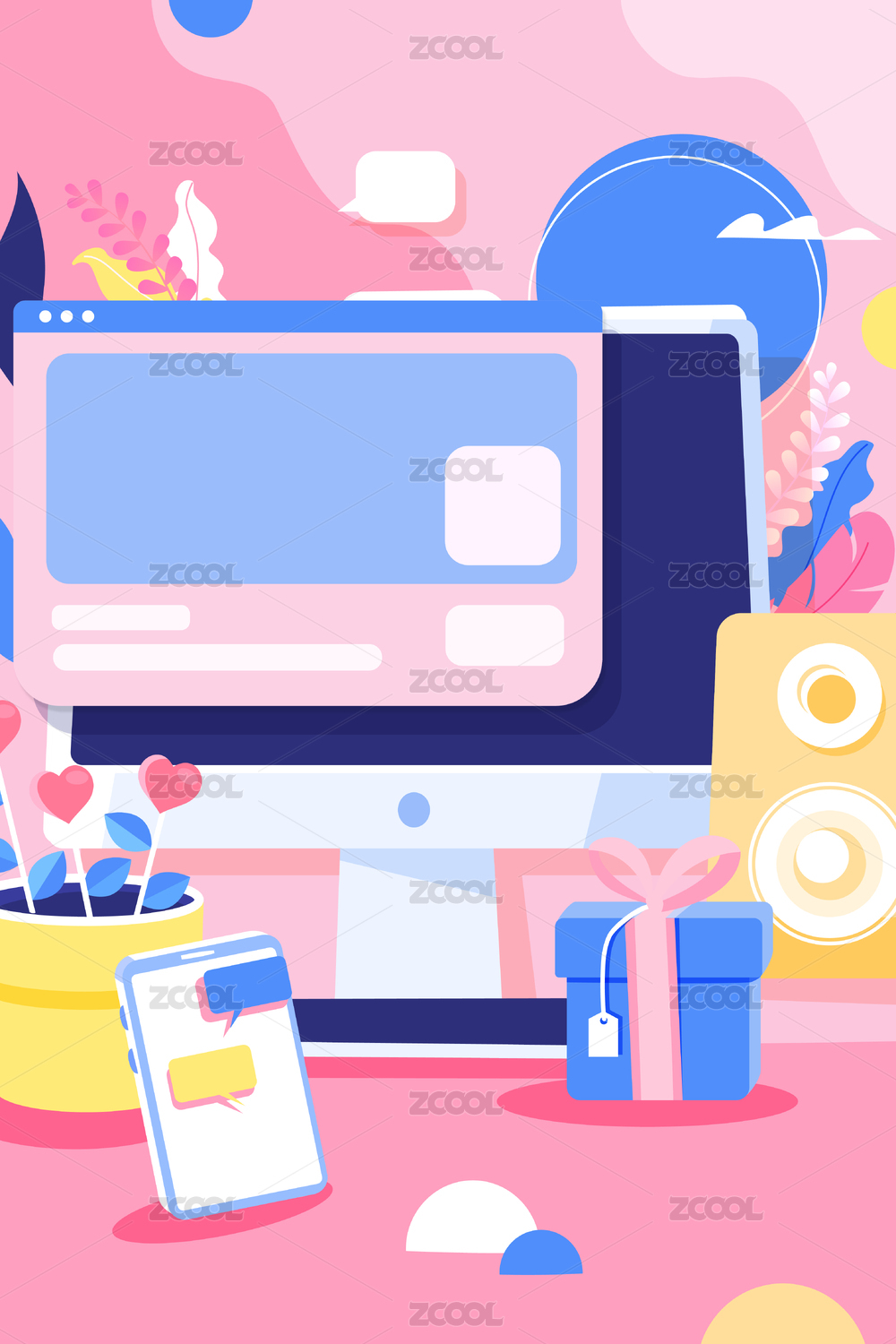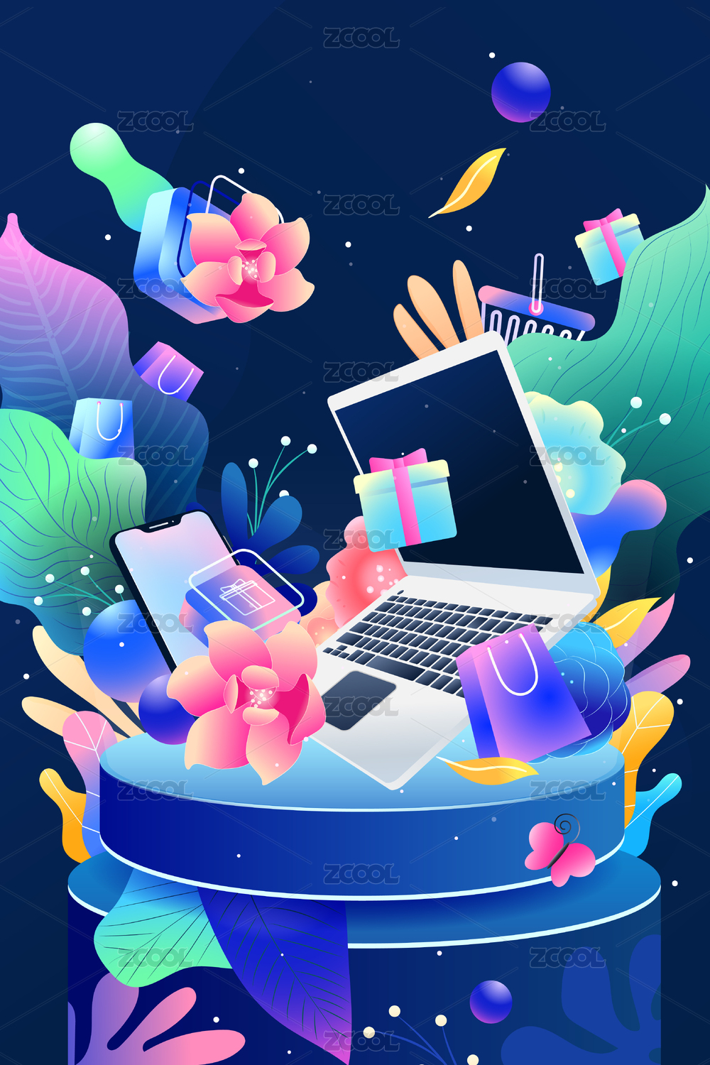 矢量,卡通,渐变,扁平,插画,插图,背景,元素,网购,消费